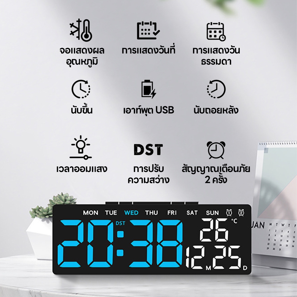 INSMART นาฬิกาอิเล็กทรอนิกส์อเนกประสงค์ ปรับความสว่างได้ 3 ระดับ แสดงเวลาแบบ 12/24 ชั่วโมง จอแสดงผล LED