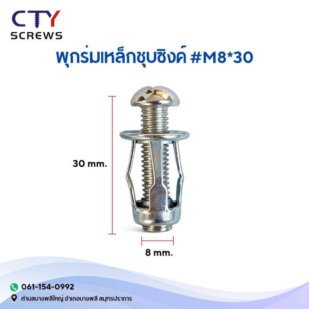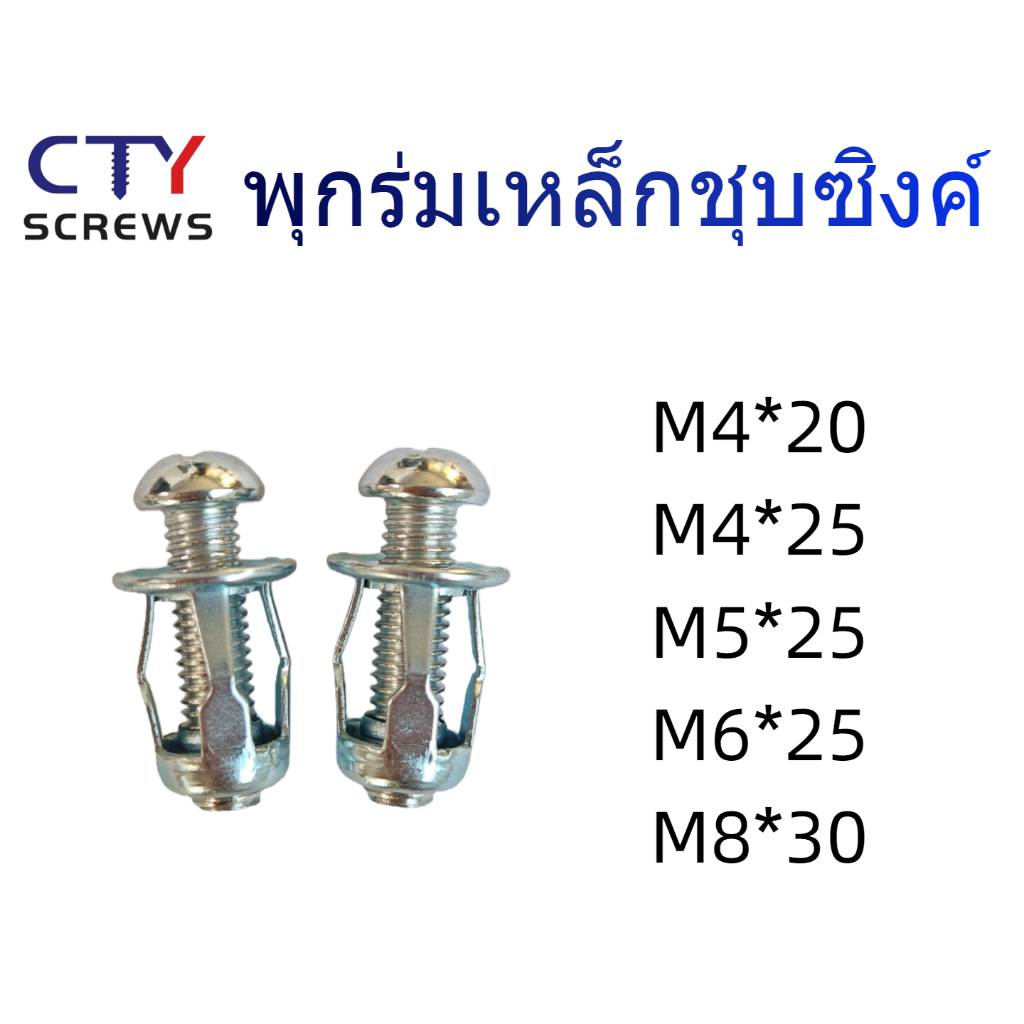 พุกร่ม น็อตสกรู M4 M5 M6 M8 พุกเหล็ก พุกร่มเหล็กชุบซิงค์ พุกก้านร่ม พุกยึดฝ้า พุกกรีบดอกไม้