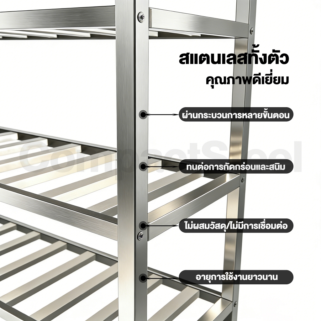 Compact Steel ชั้นวางของ สแตนเลส แข็งแรง แผ่นชั้นแบบท่อเหล็ก ความสูงคงที่ ใช้ในครัวหรืออุตสาหกรรม