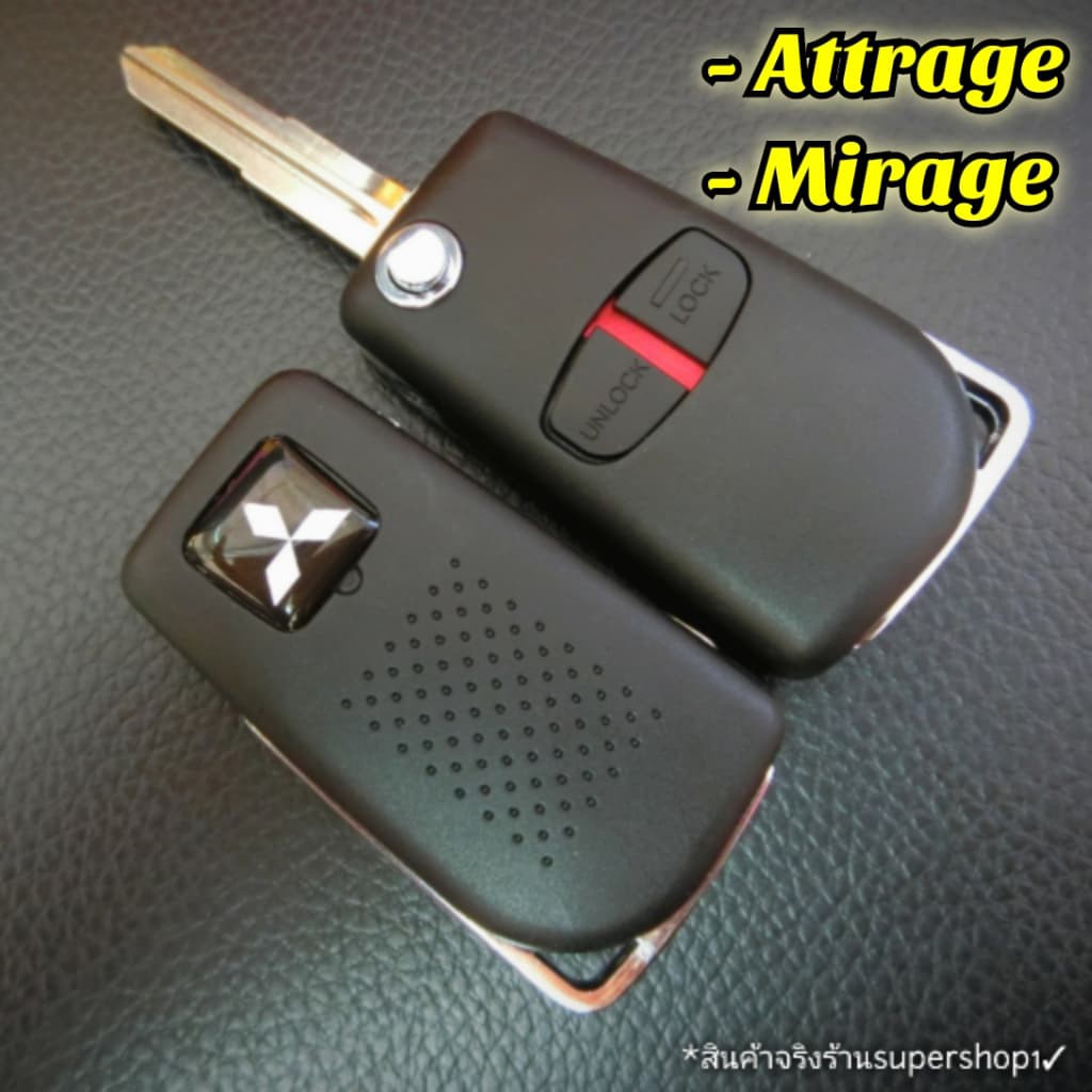 กรอบกุญแจพับ Mitsubishi, Mirage, Attrage, Triton2015, Space Wagon ร่องด้านขวา + โลโก้ + ปุ่มกด ((M4))
