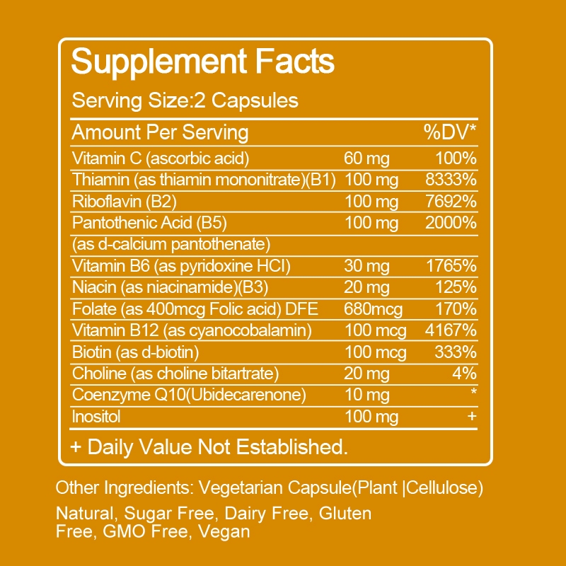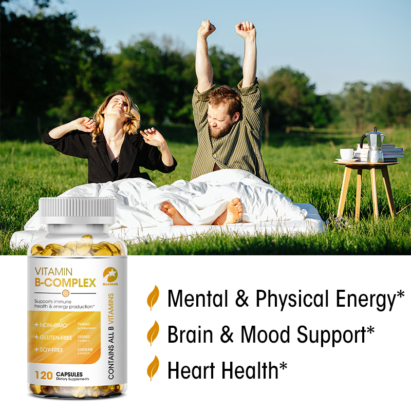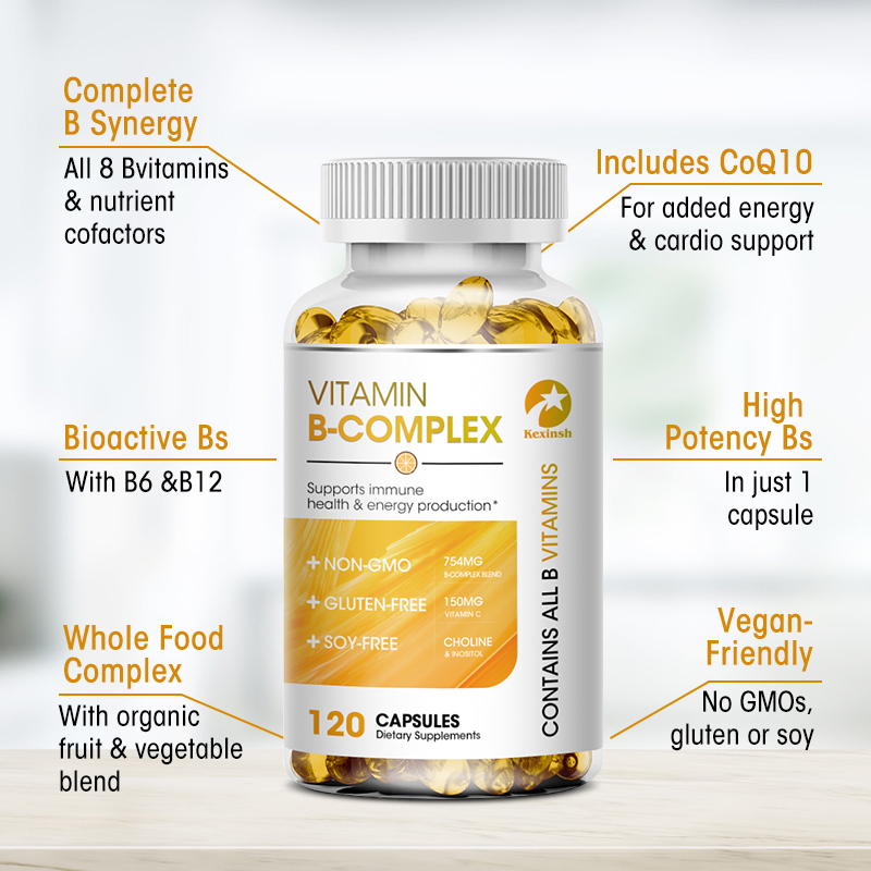 Kexinsh Vitamin B Complex Complete Capsules (B12, B1, B2, B3, B5, B6, B7, B9, Folic Acid & Biotin) ลดความเครียดและรองรับอารมณ์ดีขึ้น