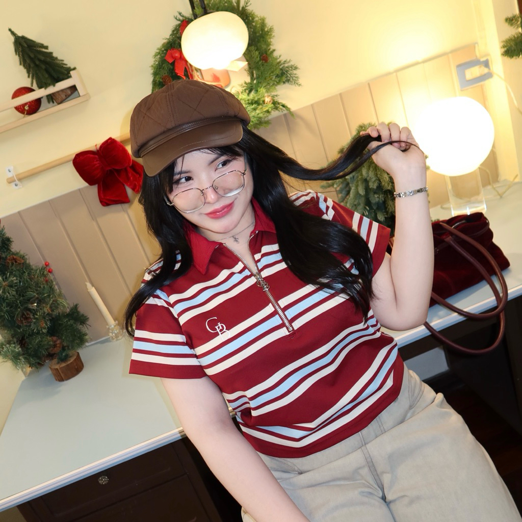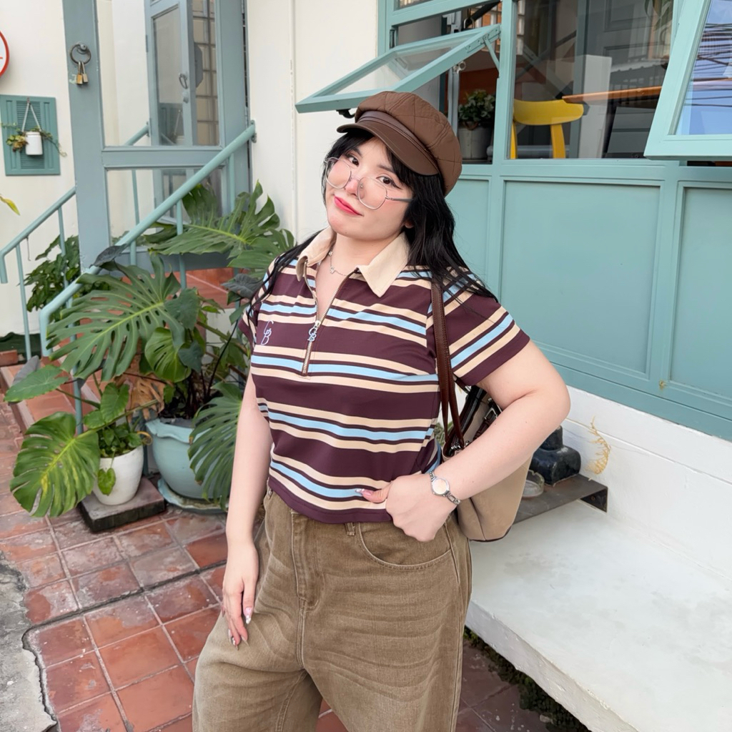 Pierre Polo เสื้อปีแอร์โปโล เสื้อโปโลครอปสาวอวบอ้วน คอซิป เสื้อลายทาง🏉✨❤️🔥 | Geebeety