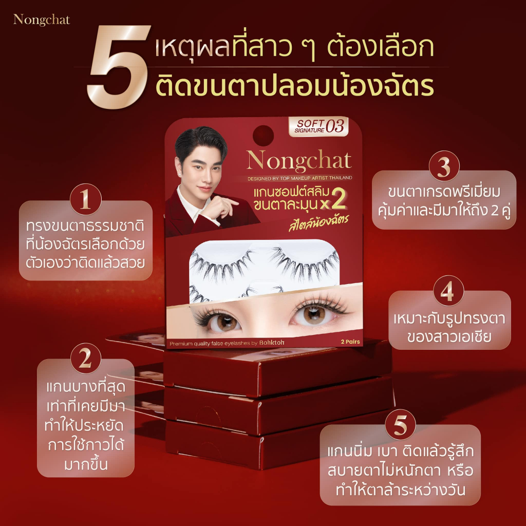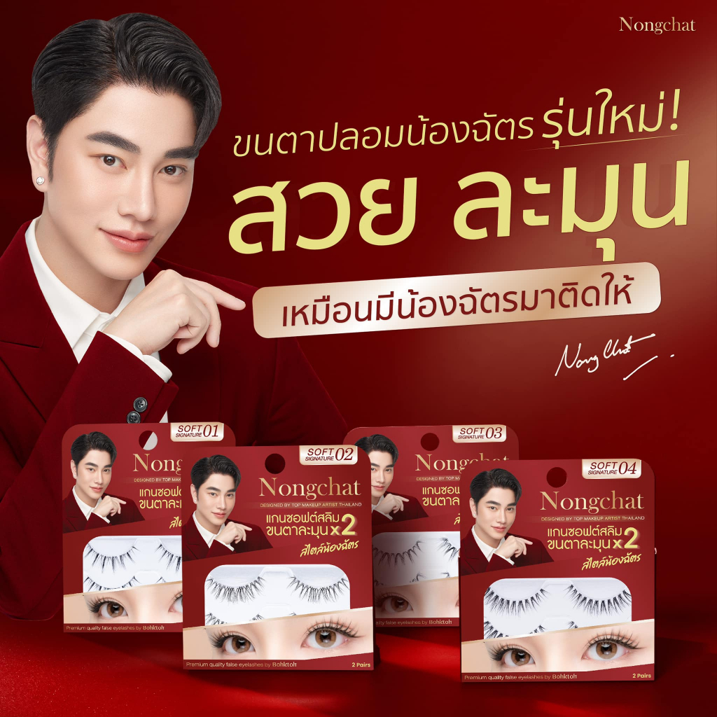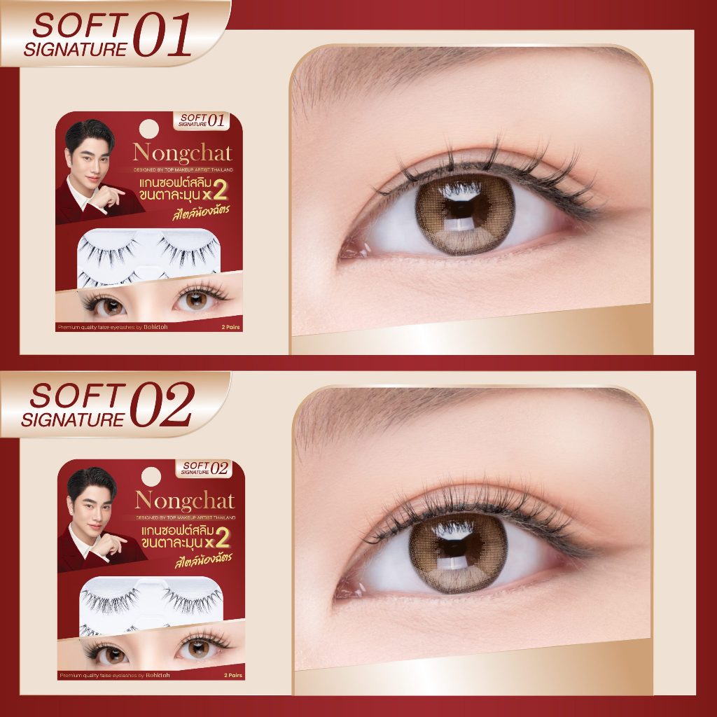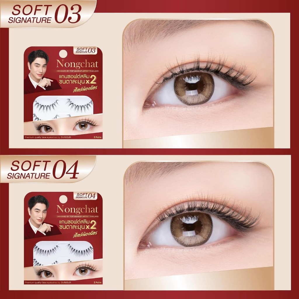 Nongchat Premium Quality False Eyelashes By Bohktoh น้องฉัตร ซอฟท์ ซิกเนเจอร์ ขนตาน้องฉัตร 2 คู่