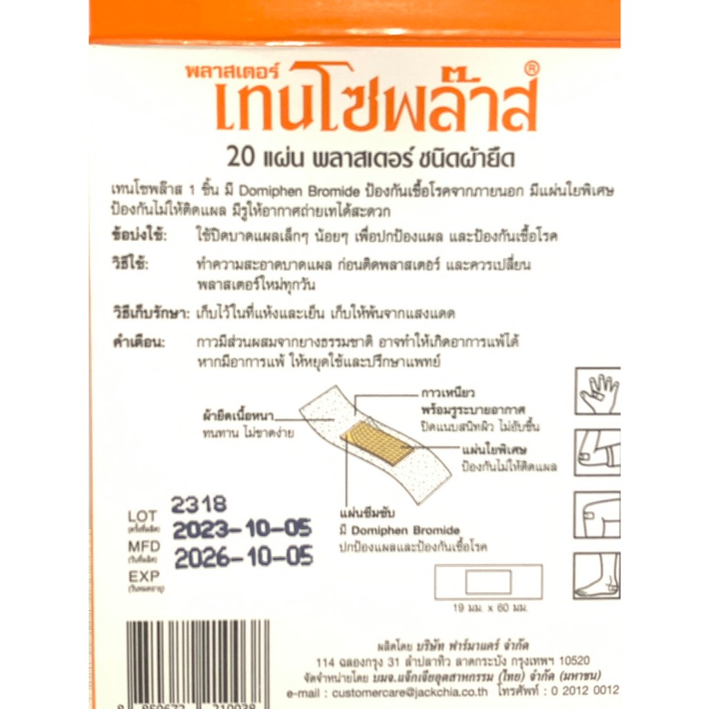Tensoplast 20 elastic fabric plasters พลาสเตอร์ปิดแผล เทนโซพลาส 1กล่องมี 20แผ่น