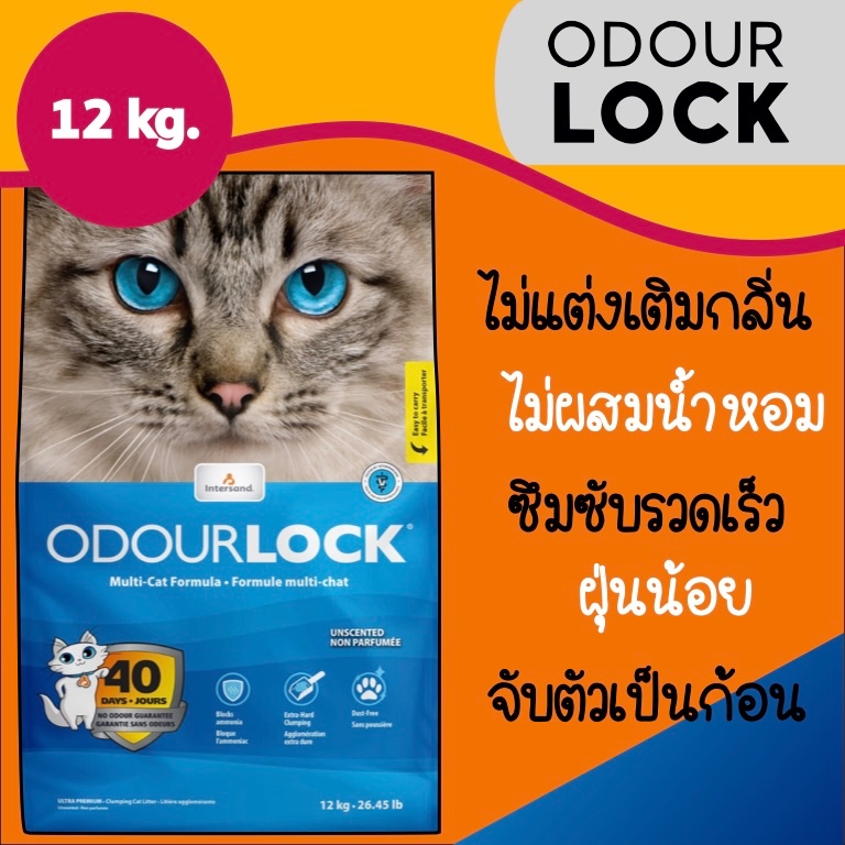 ทรายแมว ODOURLOCK ทรายแมวภูเขาไฟเกรดอัลตราพรีเมี่ยม ขนาด 12 kg.