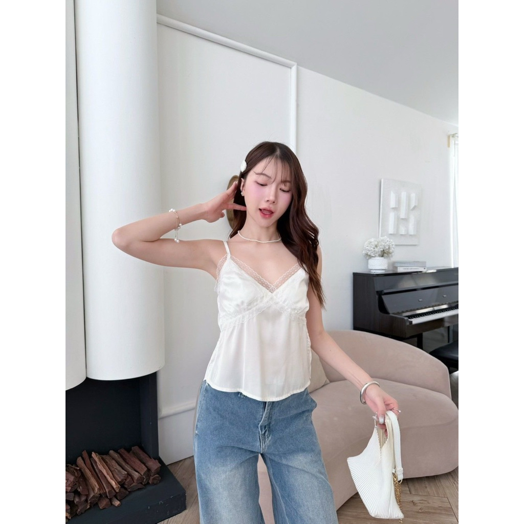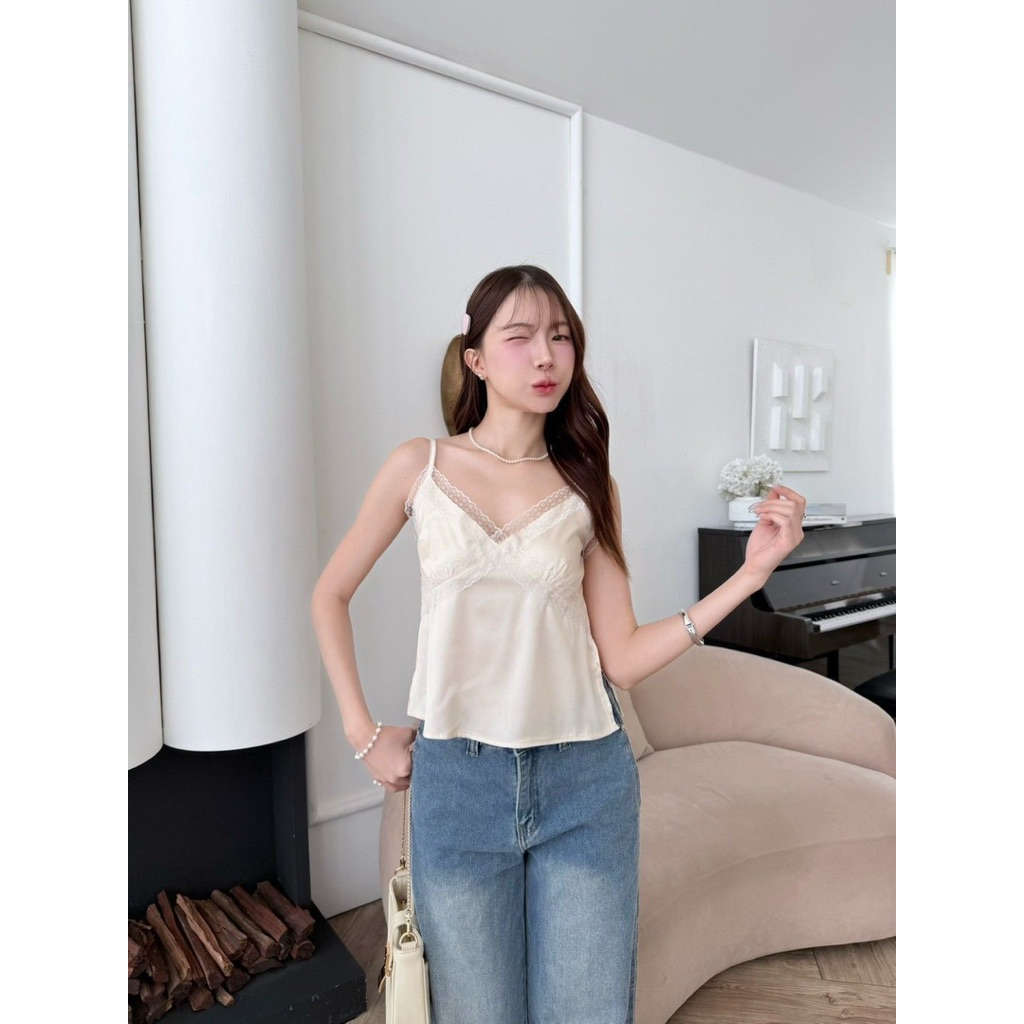 Chugar.Pie : Minami Top 🪿🤍🌷 เสื้อสายเดี่ยวซาติน เสื้อสายเดี่ยว