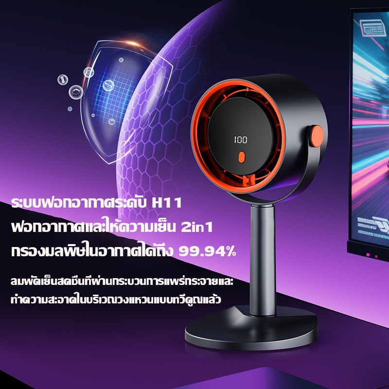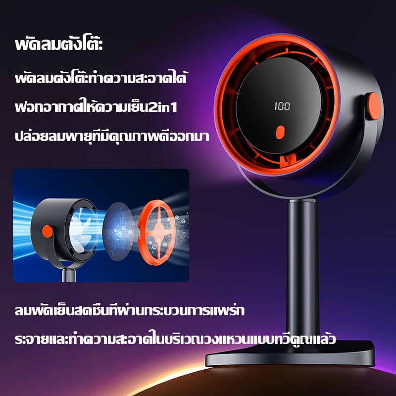【สามารถใช้งาน 64 ชั่วโมง】FLON พัดลมชาร์จไฟ 10000mAh เงียบ ชาร์จUSB ความแรงลม 100ระดับ พัดลมพกพาชาร์จ