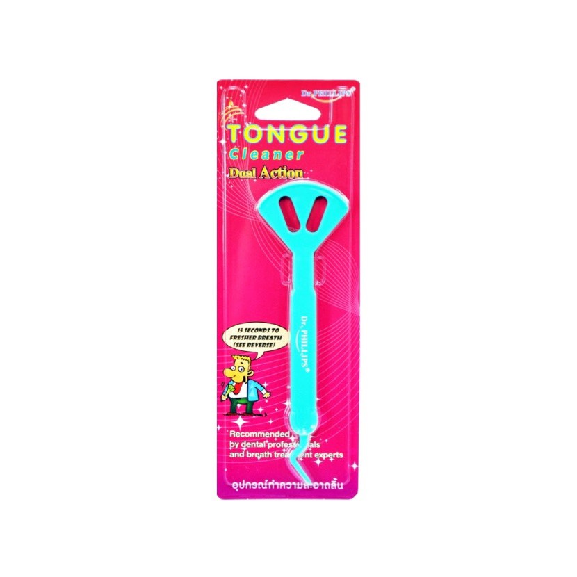 แปรงขูดลิ้น ที่ขูดลิ้น อุปกรณ์ทำความสะอาดลิ้น พร้อมที่แคะซอกฟัน Dr.Phillips Tongue Cleaner Dual Action