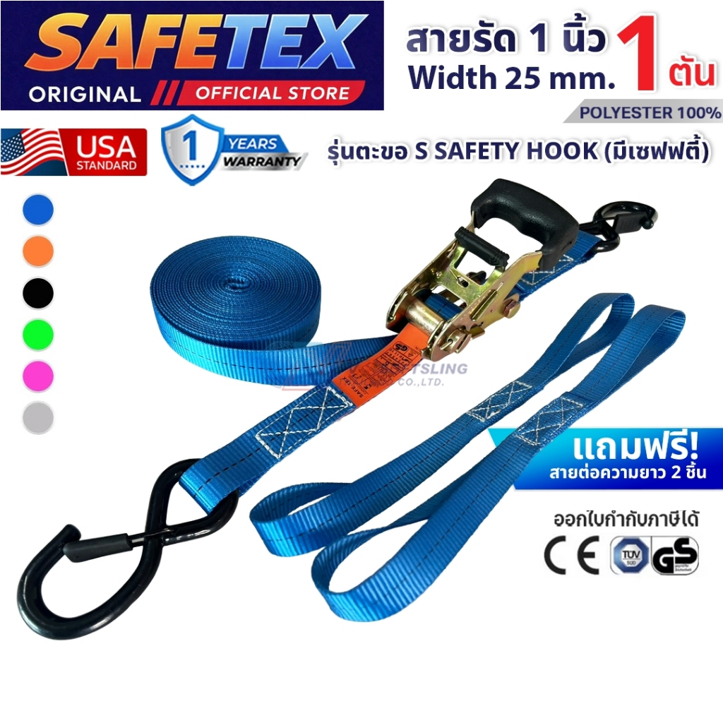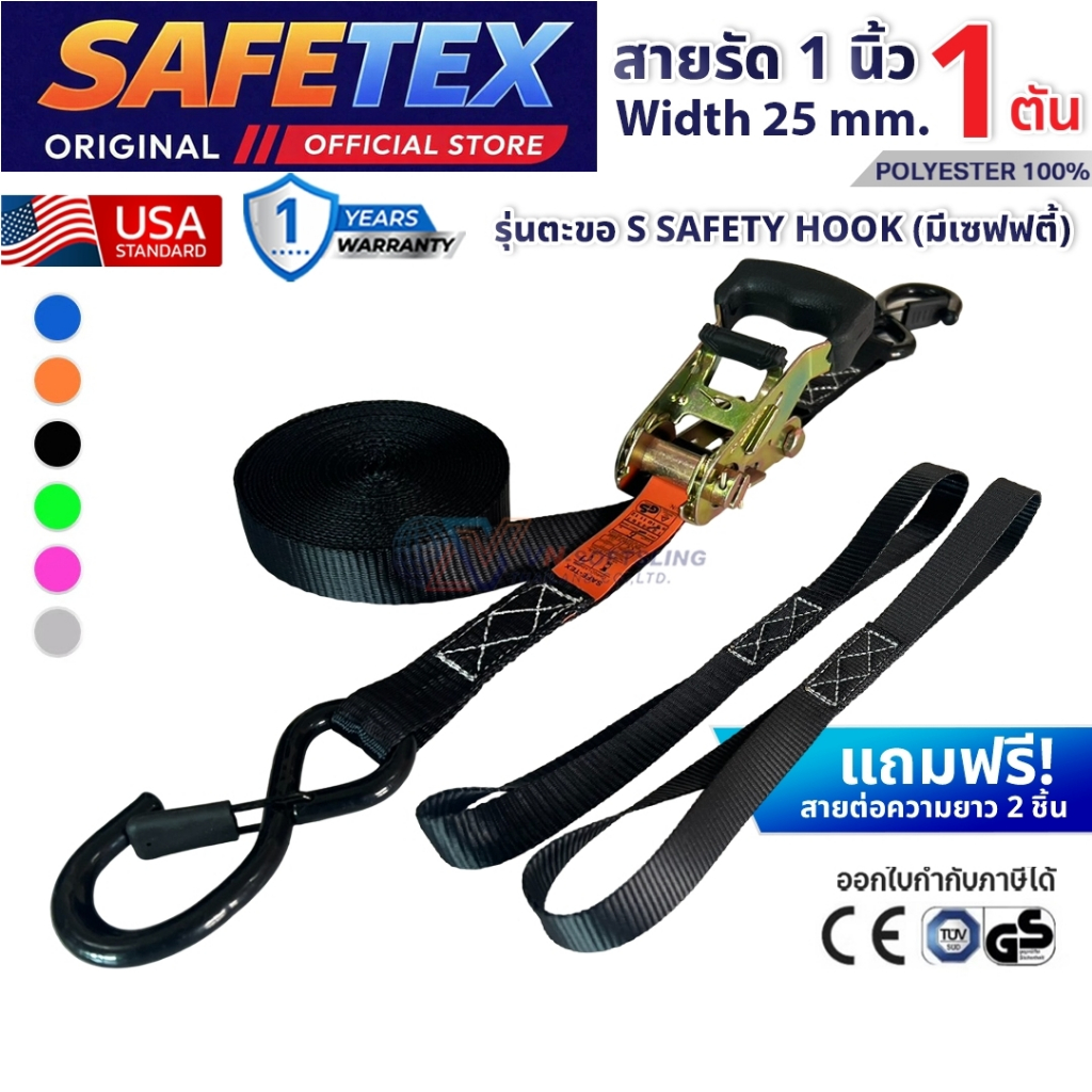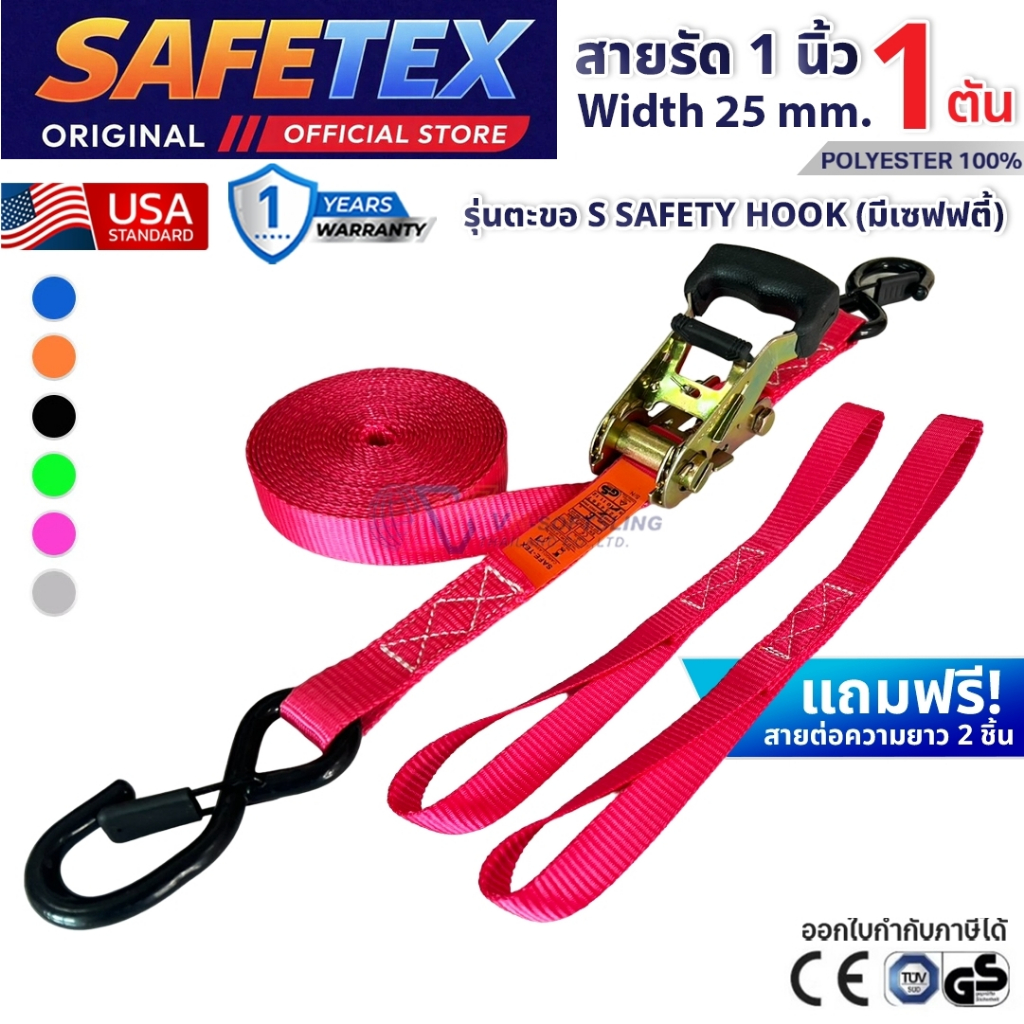สายรัดก๊อกแก๊ก 1 ตัน (ตะขอเอสเซฟตี้+สายต่อ) SAFETEX USA สายรัดของ สายรัดมอไซด์ สายรัดไรเดอร์