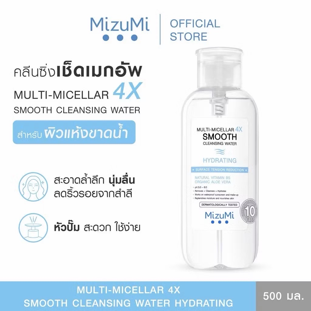 (ขวด) MizuMi Smooth Cleansing Water มิซึมิ สมูธ คลีนซิ่งวอเตอร์ เช็ดเครื่องสำอาง 100 / 500 มล.