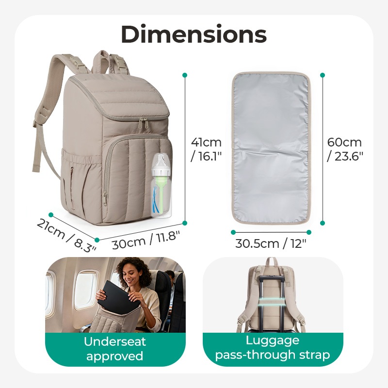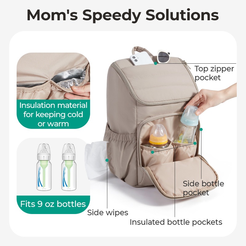 BAGSMART Travel Mommy Backpack Puffy Diaper Bag Lightweight Stylish Baby Bag with Insulated Bag, Changing Pad, Stroller Straps