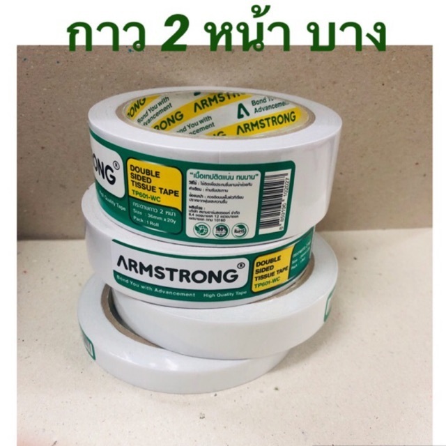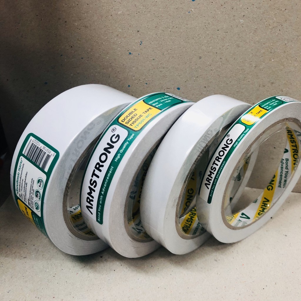 (ขายยกแถว) เยื่อกาวสองหน้าบาง เทปกาวบาง กาวสองหน้า Armstrong ยาว 20 หลา (12มิล, 18มิล, 24 มิล)