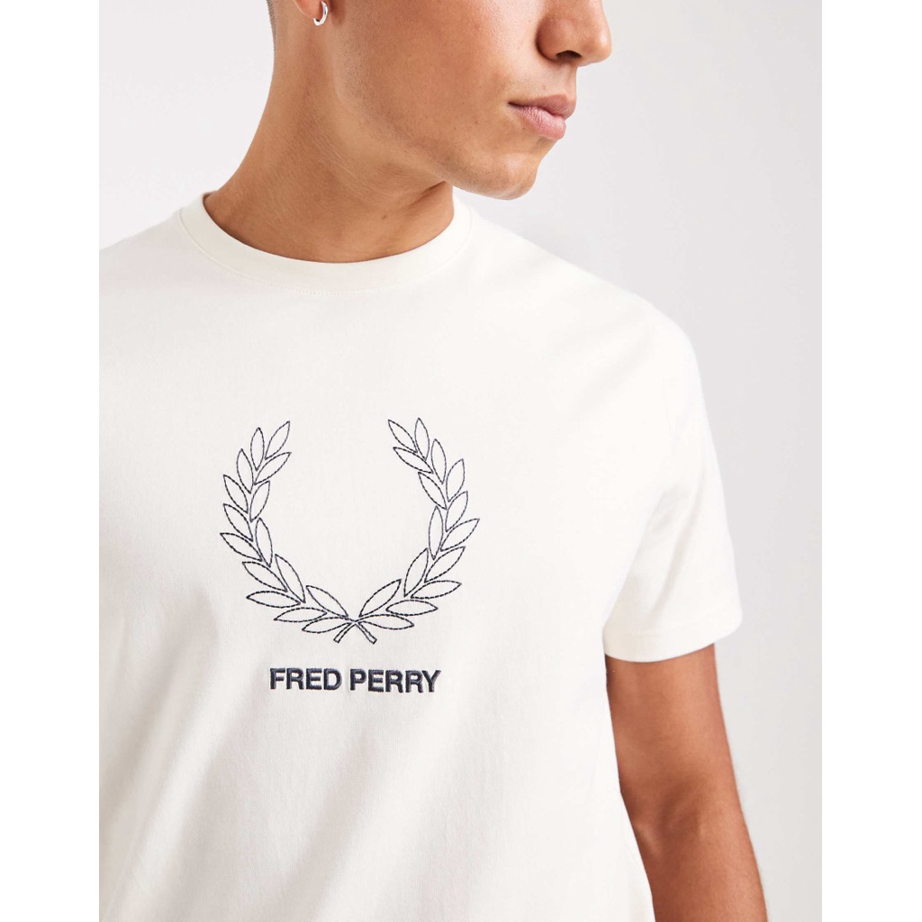 Fred Perry Outline Laurel Wreath Graphic T-Shirt in Ecru