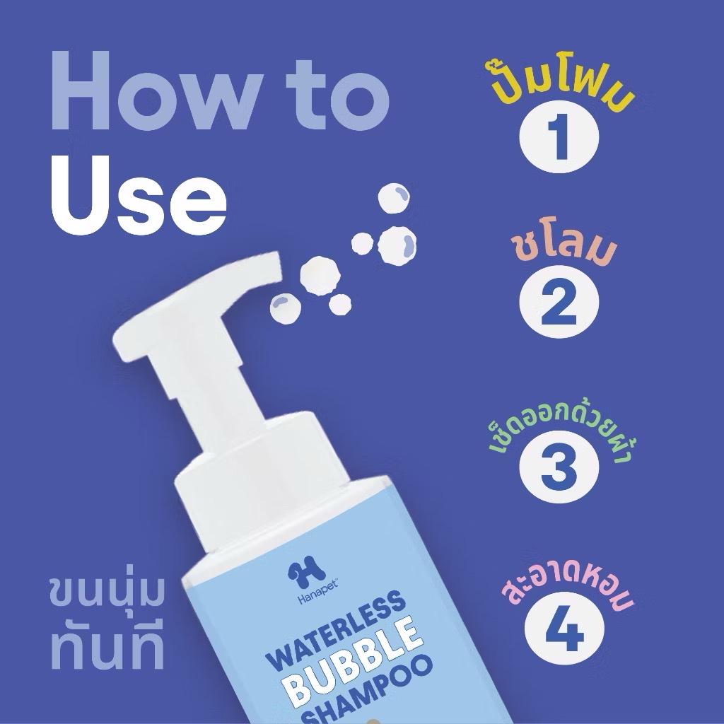 Hanapet Waterless Bubble Shampoo โฟมอาบน้ำแห้งสำหรับสัตว์เลี้ยง 130 ml