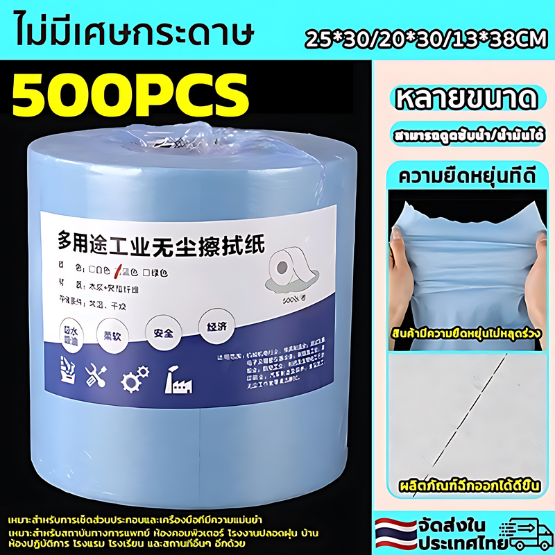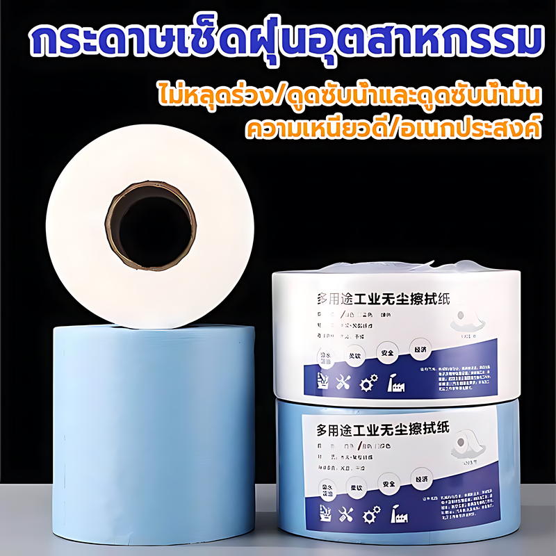 กระดาษเช็ดอุตสาหกรรม 500 แผ่น/ม้วน ไม่ทิ้งคราบขุย ทนทาน ดูดซับน้ำและน้ำมัน ยืดหยุ่นดี