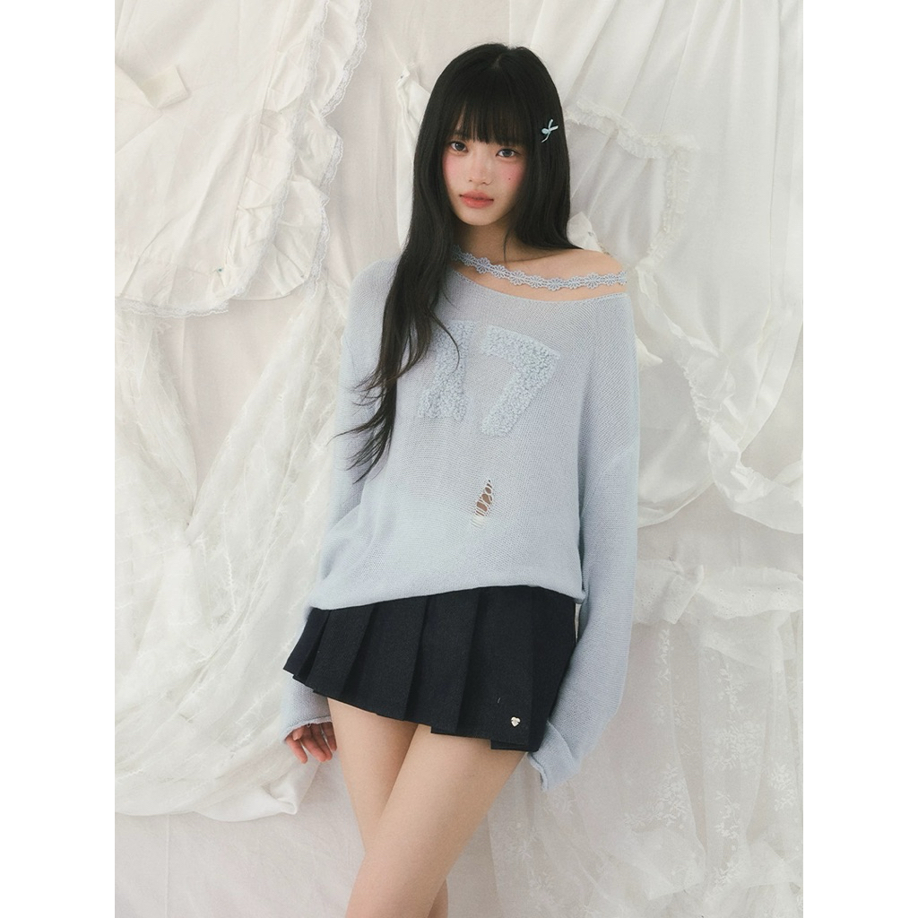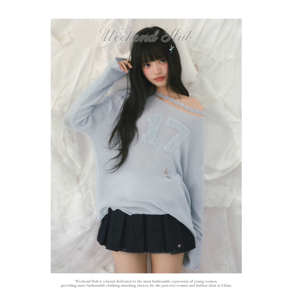 (pre-order)weekendhub - เสื้อแขนยาวปาดไหล่สีฟ้า 17 รอบโปร ของแท้