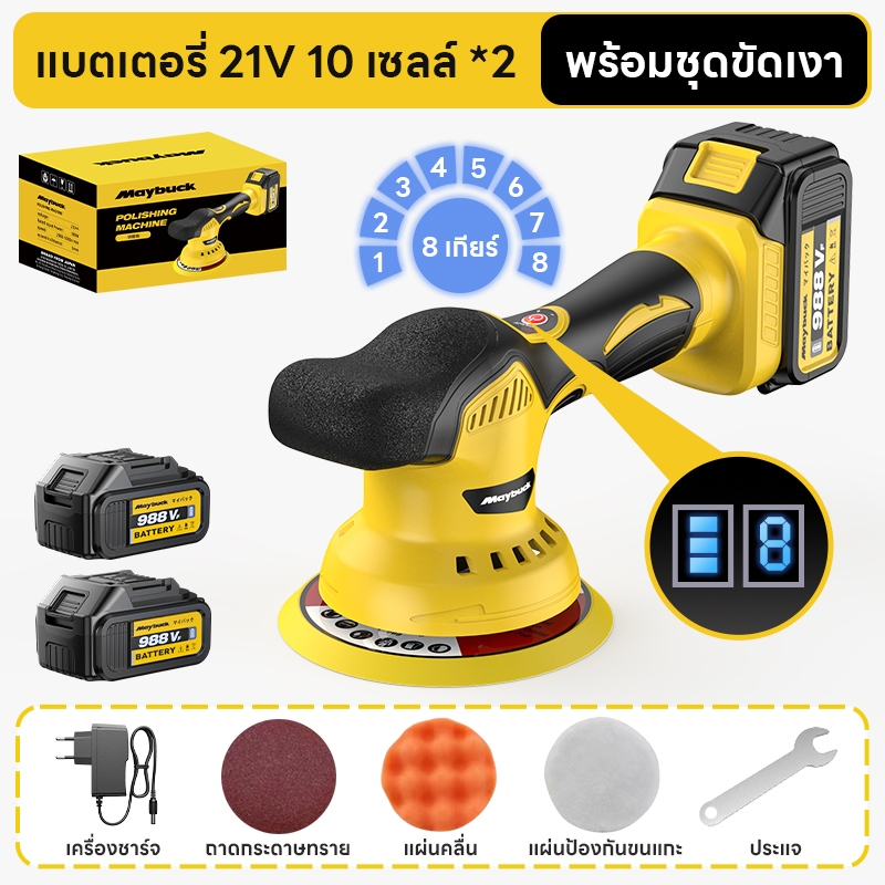 เครื่องขัดสีรถยนต์ เครื่องขัดสีรถยนต์ไร้สาย 380W ปรับได้ 8สปีด แผ่นขัด 2 แบบฟรี
