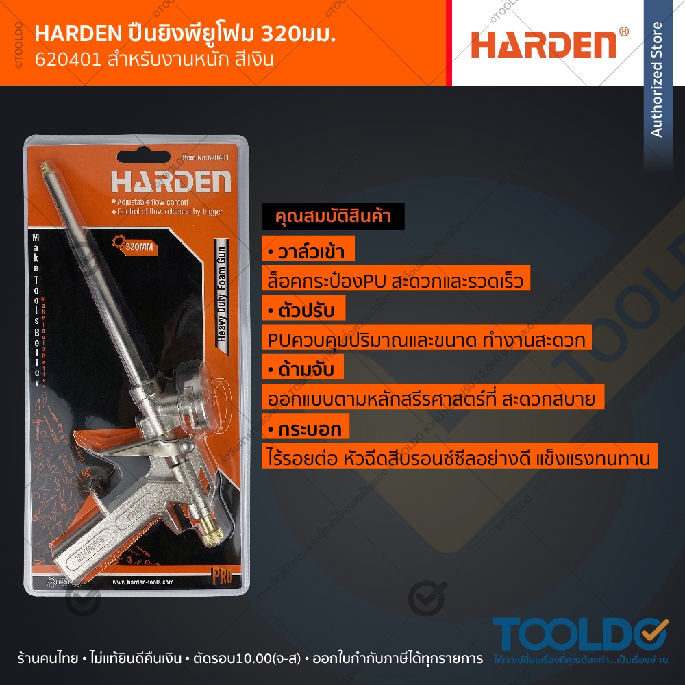 HARDEN ปืนยิงพียูโฟม สำหรับงานหนัก สีเงิน 32 ซม. 620401 ปืนยิง พียูโฟม ปืนยิง PU Foam Gun Heavy Duty