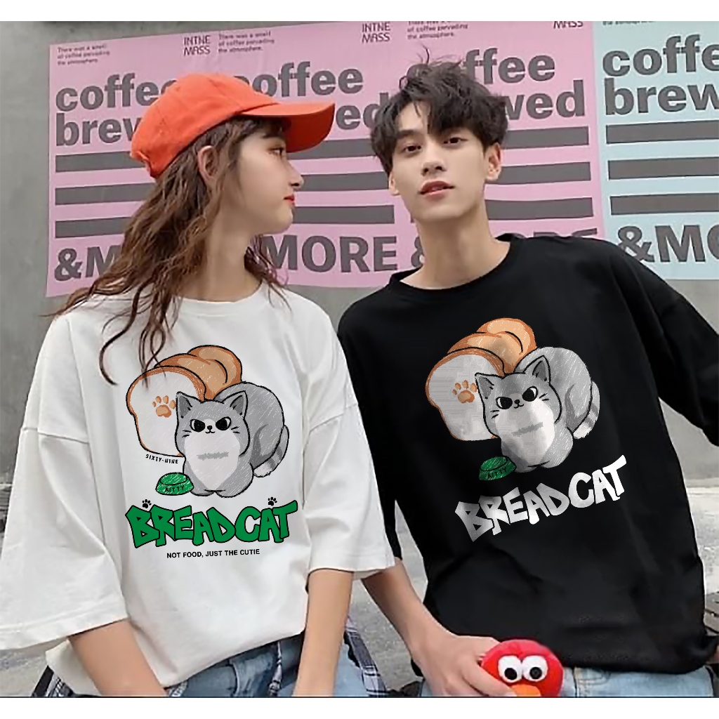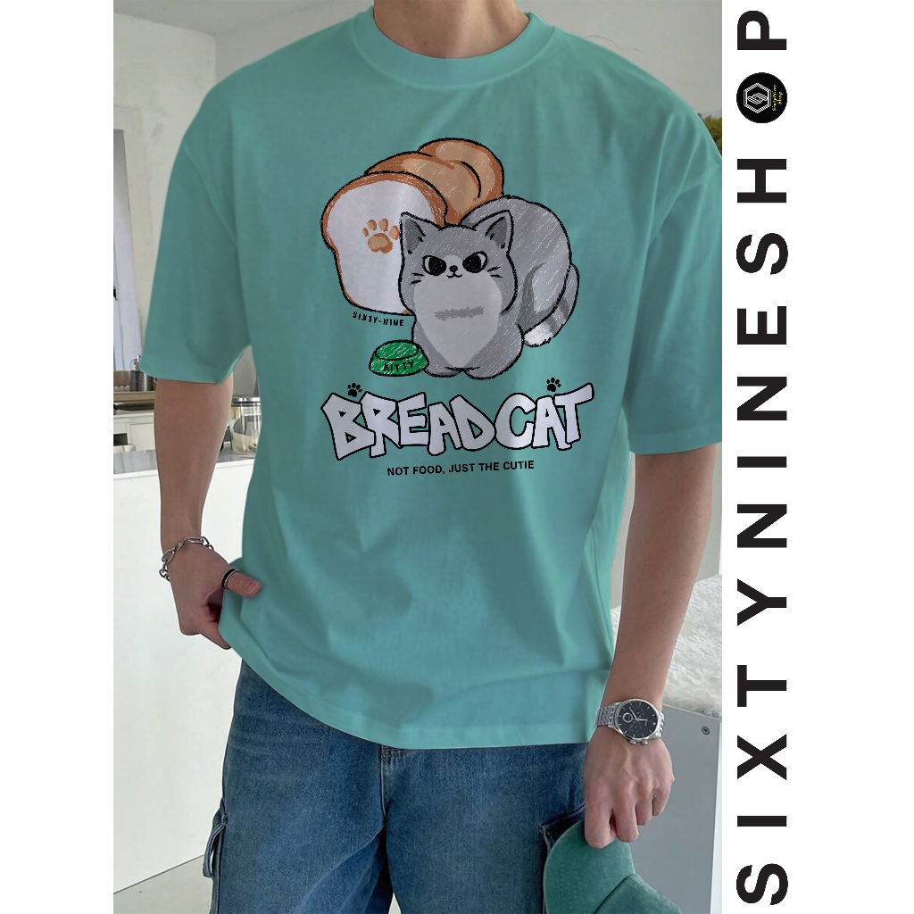 เสื้อยืดผ้าคอตตอน M-4XL พิมพ์ลาย " Bread cat " พร้อมส่ง