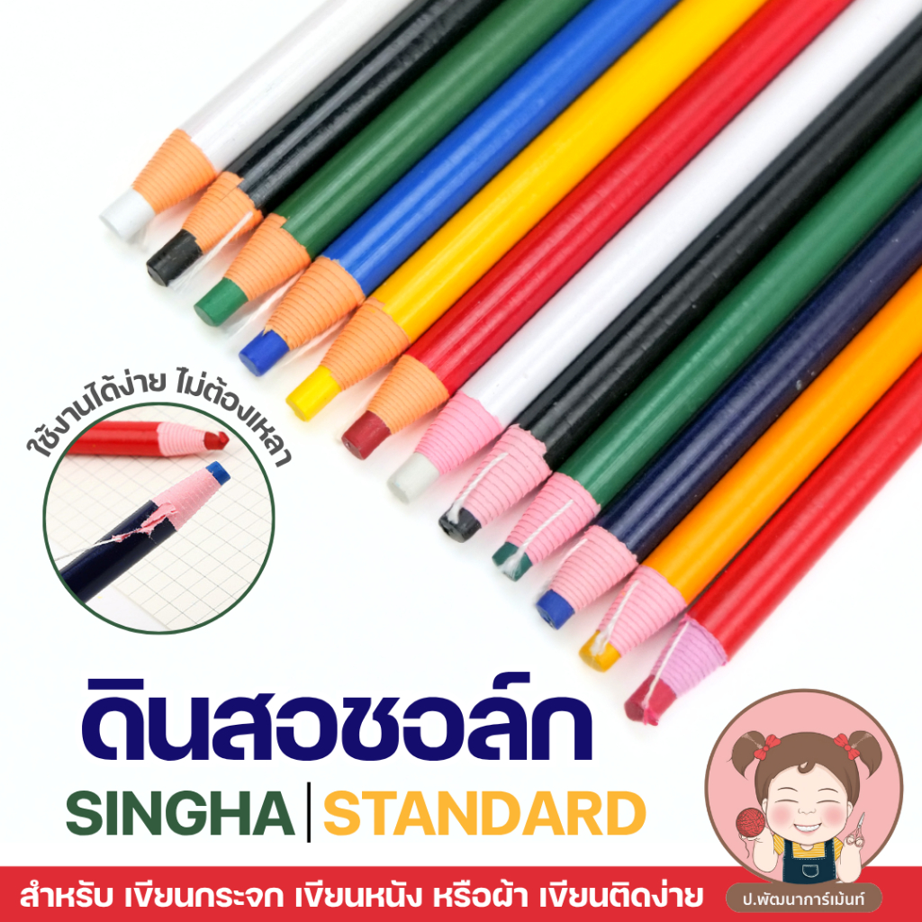 [ดินสอชอล์ก] ดินสอชอล์ก แบบปลอก ยี่ห้อ SINGHA และ STANDARD สำหรับเขียนผ้า เขียนหนัง เขียนกระจก