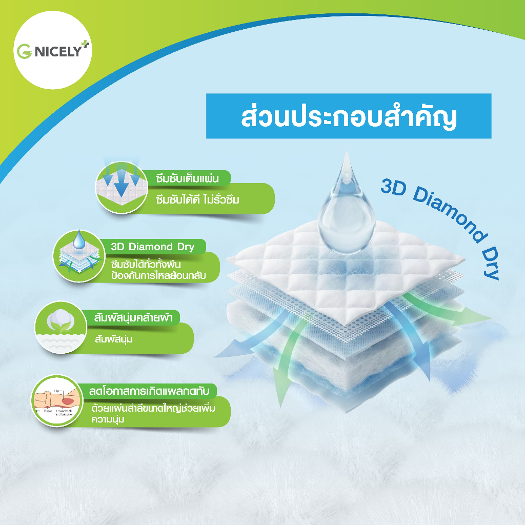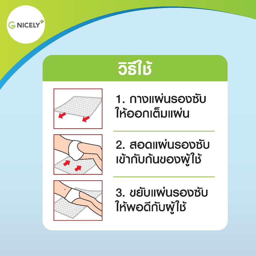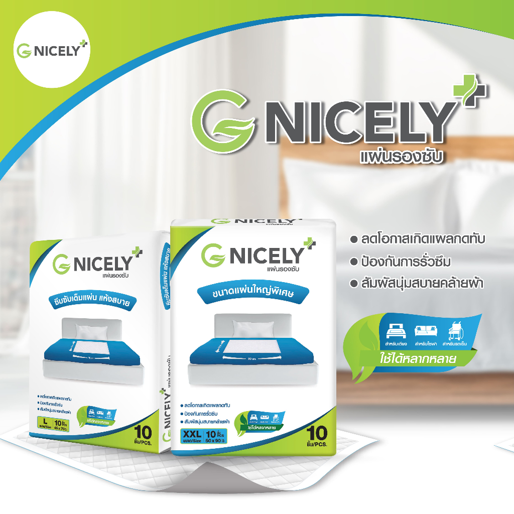 จี ไนซรี่ แผ่นรองซับ Size L 45x70 cm. แพ็ค 10 ชิ้น แผ่นกันเปื้อนที่นอน แผ่นรองปัสสาวะ G Nicely Adult Disposable Pads
