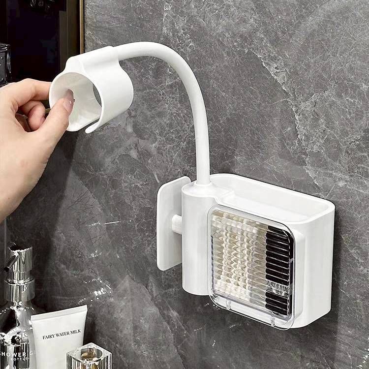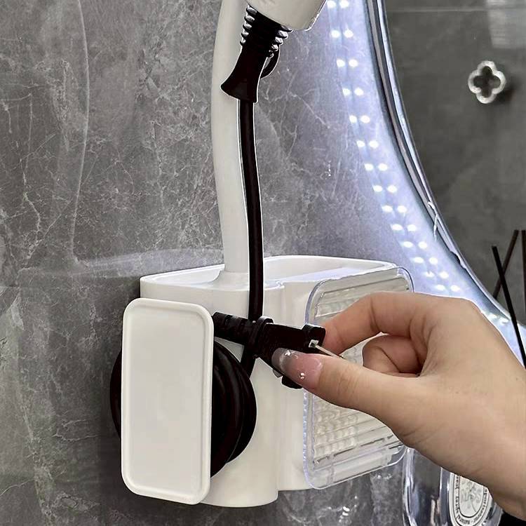 ที่แขวนไดร์เป่าผม 2 IN 1 มีช่องจัดเก็บของ ขาตั้งไดร์หมุน 360 องศา แบบติดผนังใช้เทปกาว ไม่ต้องเจาะ ติดตั้งง่าย