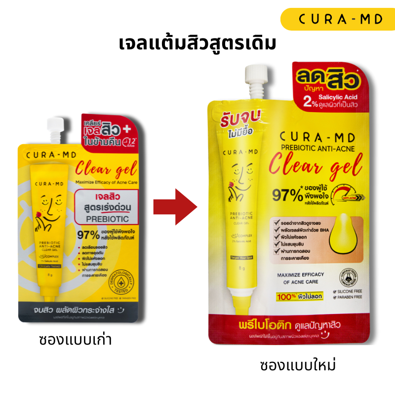 [ยกกล่อง 6ซอง] CURA-MD เจลแต้มสิว พรีไบโอติก ยุบไว ในข้ามคืน Prebiotic Anti-Acne Clear Gel 4 กรัม ทั้งหมด 6 ซอง