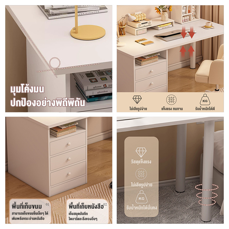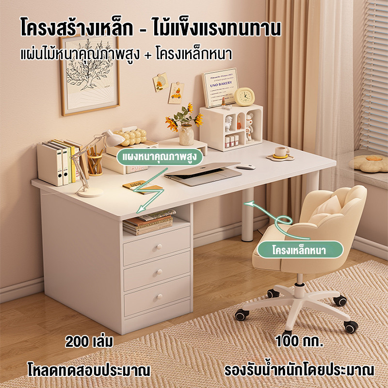 ขาวโต๊ะทํางานมีลิ้นชัก140/120/100CM โต๊ะคอม สไตล์ยุโรป พื้นที่จัดเก็บขนาดใหญ่ ประกอบง่าย study desk