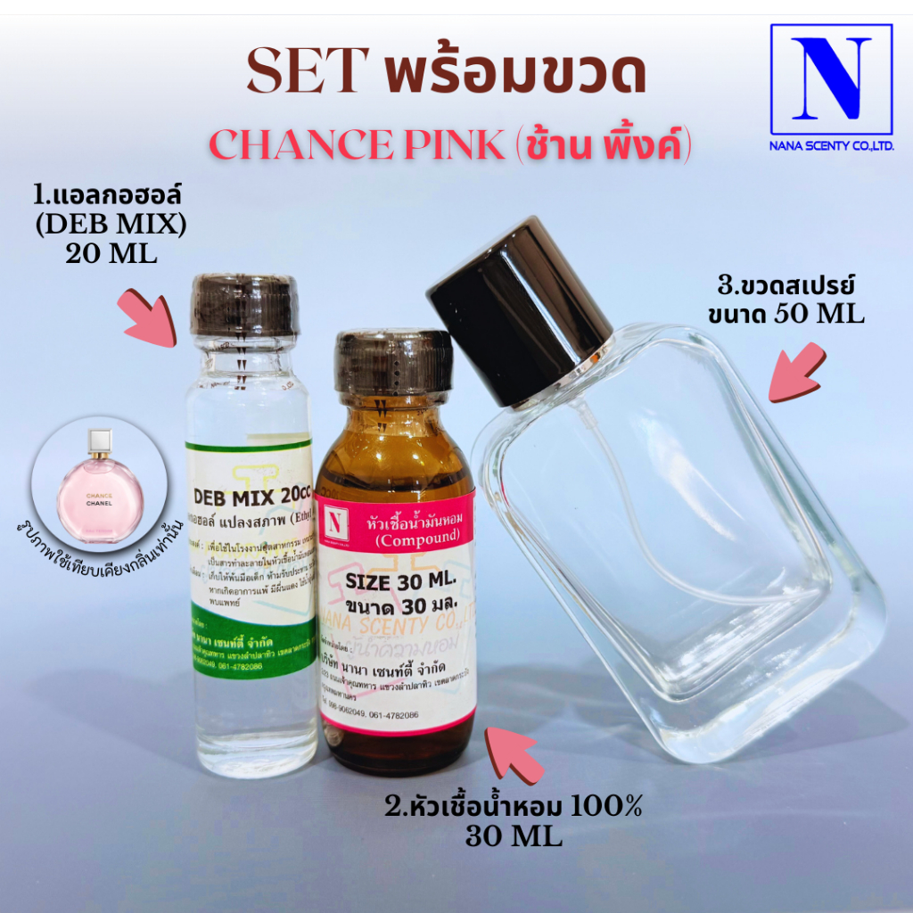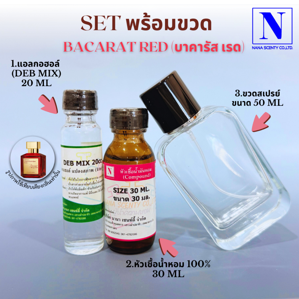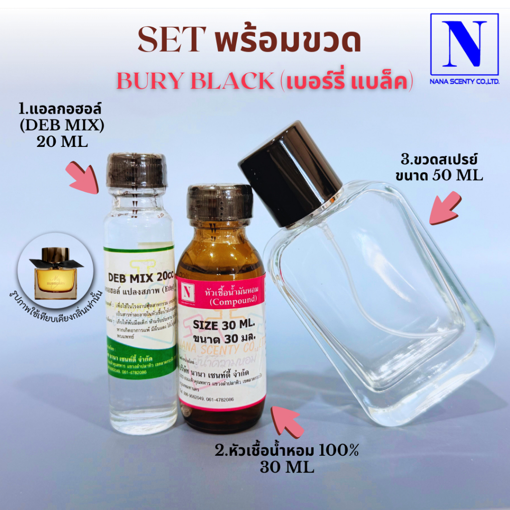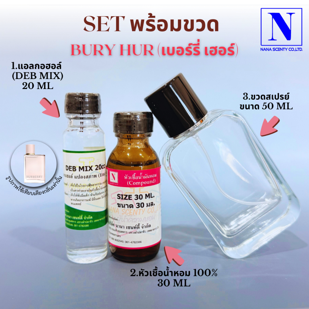ชุดเซตพร้อมขวด (หัวเชื้อน้ำหอม 30 ML+แอลกอฮอล์ DEB MIX 20 ML+ขวดสเปรย์ขนาด 50 ML)