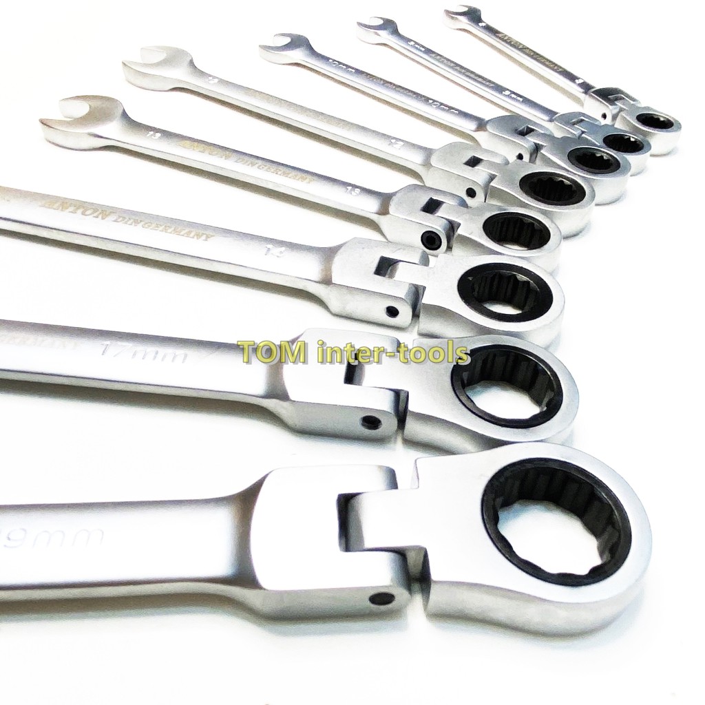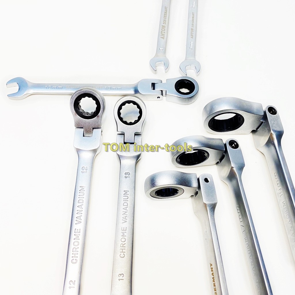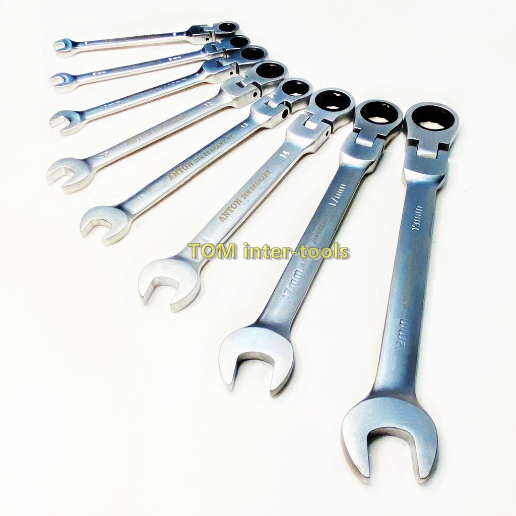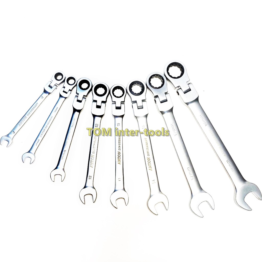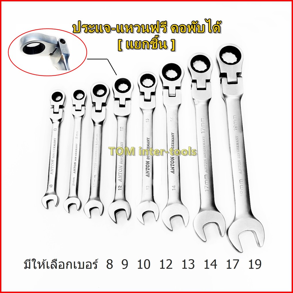 (แยกชิ้น)ANTON ประแจ ปากตาย-แหวนฟรี (คอพับได้) เบอร์ 8-19mm ประแจแหวนฟรี