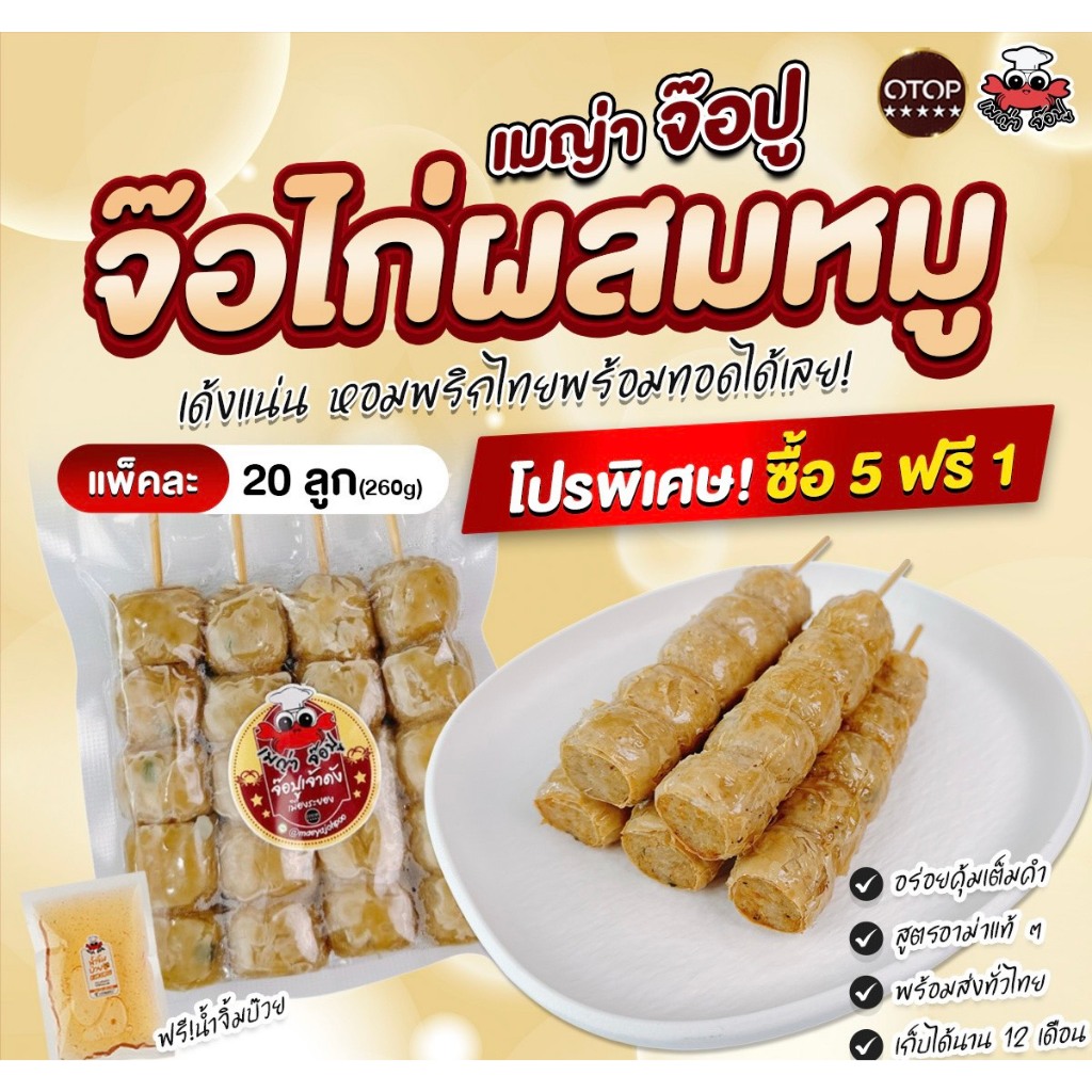 เมญ่าจ๊อปู 260g จ๊อไก่ผสมหมู (1แพค 20ลูก) พร้อมน้ำจิ้มบ๊วย แก้ไขที่อยู่ทักแชทแจ้งแอดมิน