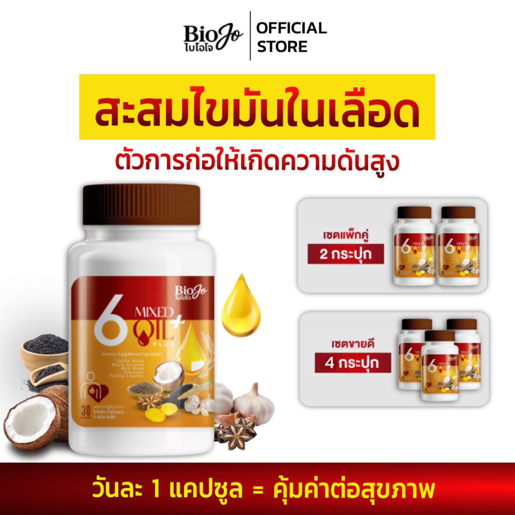 BIOJO ไบโอโจ น้ำมันรวม 6 ชนิด พลัส {1 กระปุก 30 เม็ด} ความดัน ไขมันสูง คอเลสเตอรอล ดูแลหัวใจ