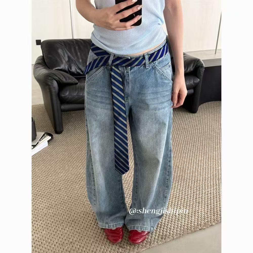 เข็มขัดและผ้าพันคอแฟชั่นผูกเอว สำหรับทุกเพศ ทำจากเดนิม อุปกรณ์ตกแต่งเอวแบบหลายสไตล์