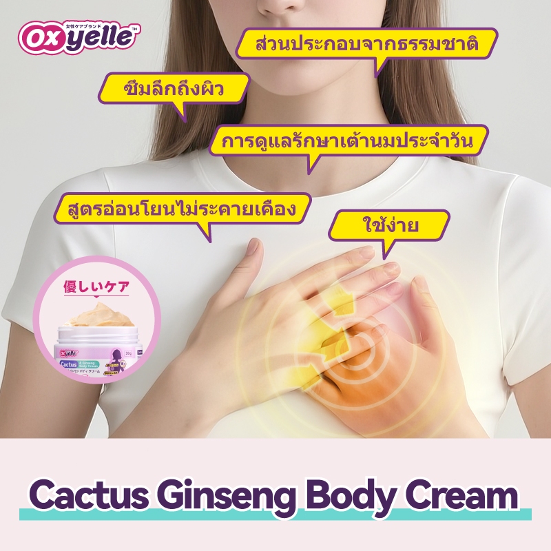 Oxyelle ครีมนวดอบอุ่น ผ่อนคลายประจำเดือนและบริเวณอก สูตรแคคตัสและจินเส็ง /30g