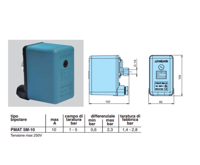 สวิทซ์เเรงดันใช้กับปั้มน้ำ ยี่ห้อ Calpeda made in italy PMAT 5M/T-16