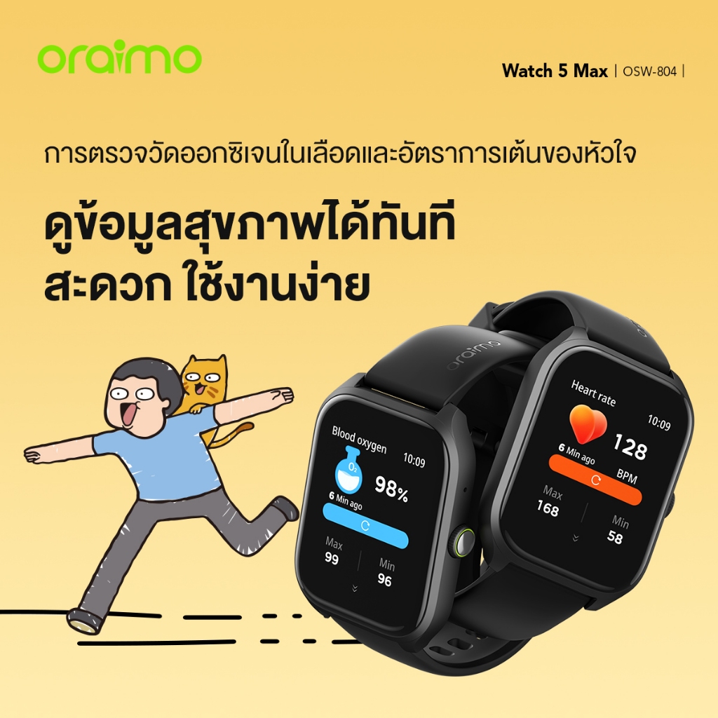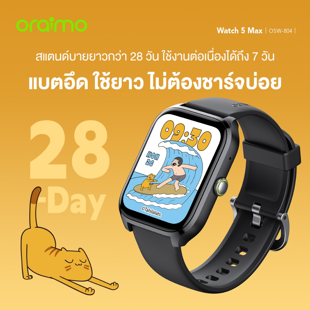 【ส่งทันที】oraimo Watch 5 Max OSW-804 นาฬิกาอัจฉริยะ Bluetooth โทรได้ จอใหญ่ 2.01” วัดสุขภาพ โหมดกีฬา 105 แบต 7 วัน สแตนด์บาย 28 วัน IP68 นาฬิกาออกกำลังกาย
