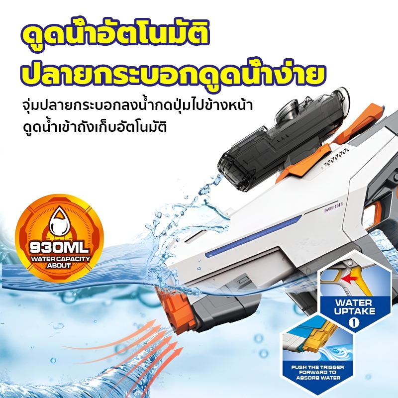 ปืนฉีดน้ำไฟฟ้า แรง พิสัยไกล 15 เมตร ของเล่นสงกรานต์ เด็กและผู้ใหญ่ ปืนฉีดน้ำเล่น