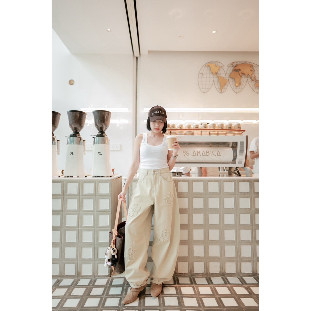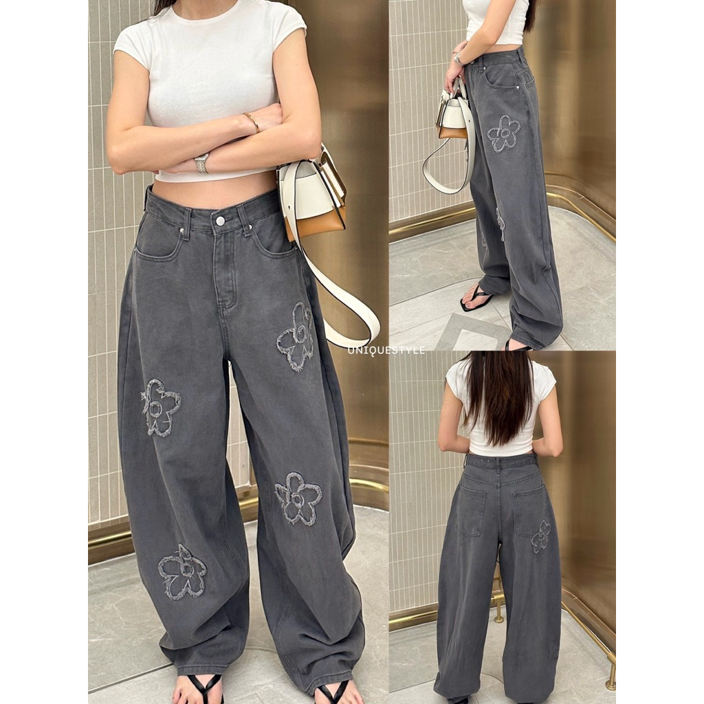 📍พร้อมส่ง📍🇰🇷FSY🇰🇷61912 Fleur carve jeans • กางเกงยีนส์ขากว้างทรงบอลลูน เย็บลายดอกไม้ เป็นงานดีไซน์ลายฟุ้งขอบรุ่ย