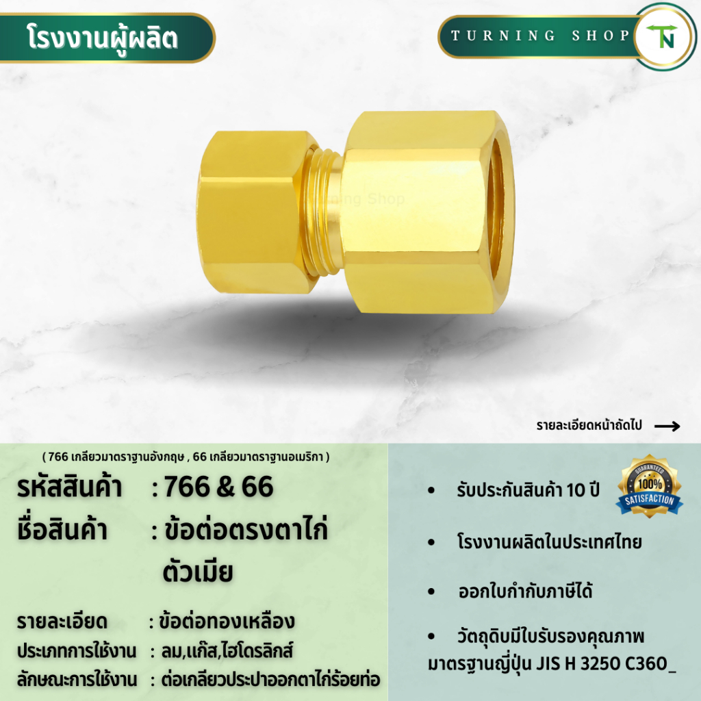 766,66 ข้อต่อตรงตาไก่ตัวเมีย ข้อต่อทองเหลือง (ขนาด 1/8"-3/4") **กรุณาอ่านรายละเอียดก่อนสั่งซื้อ