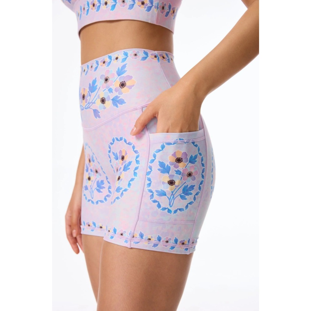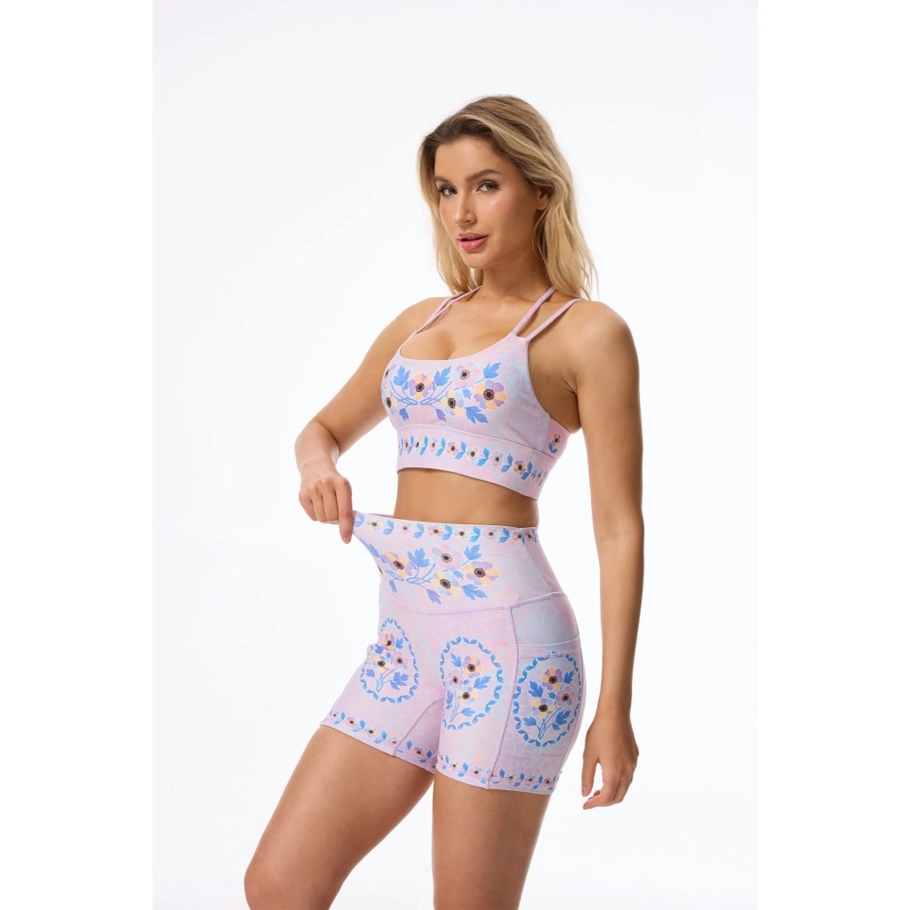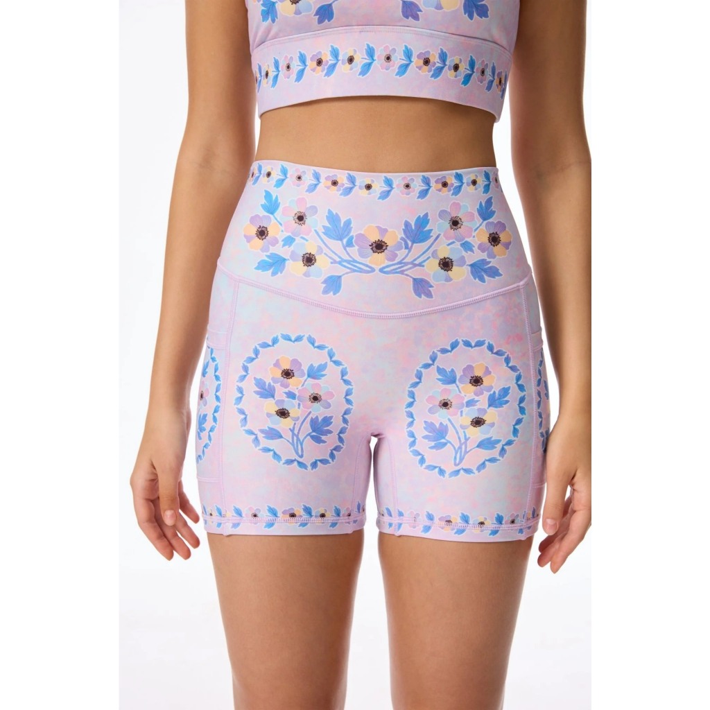 SILVERWIND กางเกงขาสั้นเอวสูง Soft Blossom พร้อมกระเป๋า - 4 Way Stretch Tummy Control ออกกําลังกายวิ่งเลกกิ้งกีฬา Biker กางเกงขาสั้นกระเป๋าด้านข้าง-รูปแบบ Nud