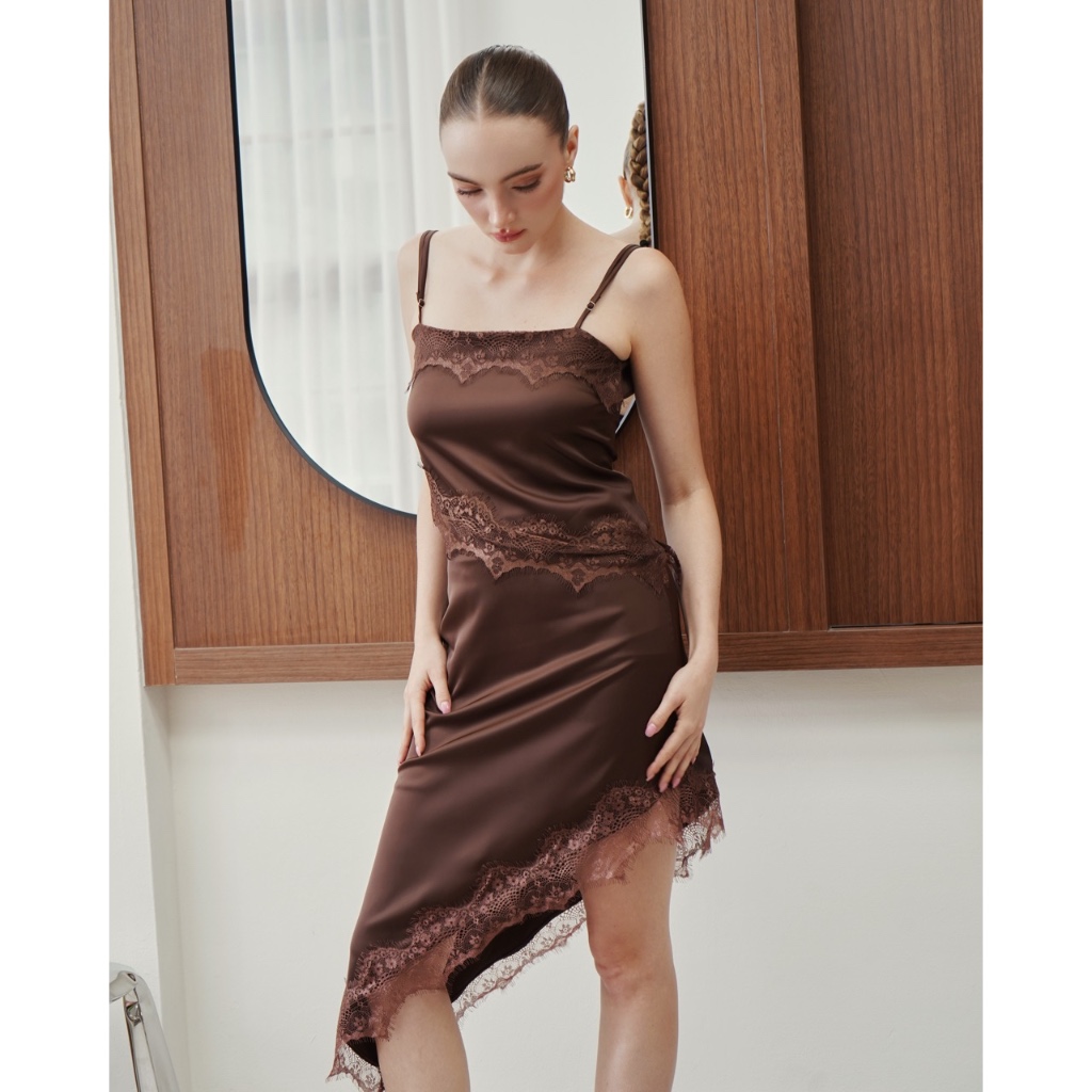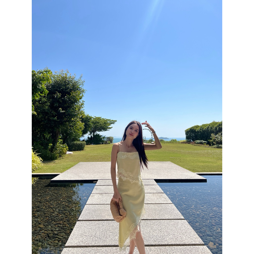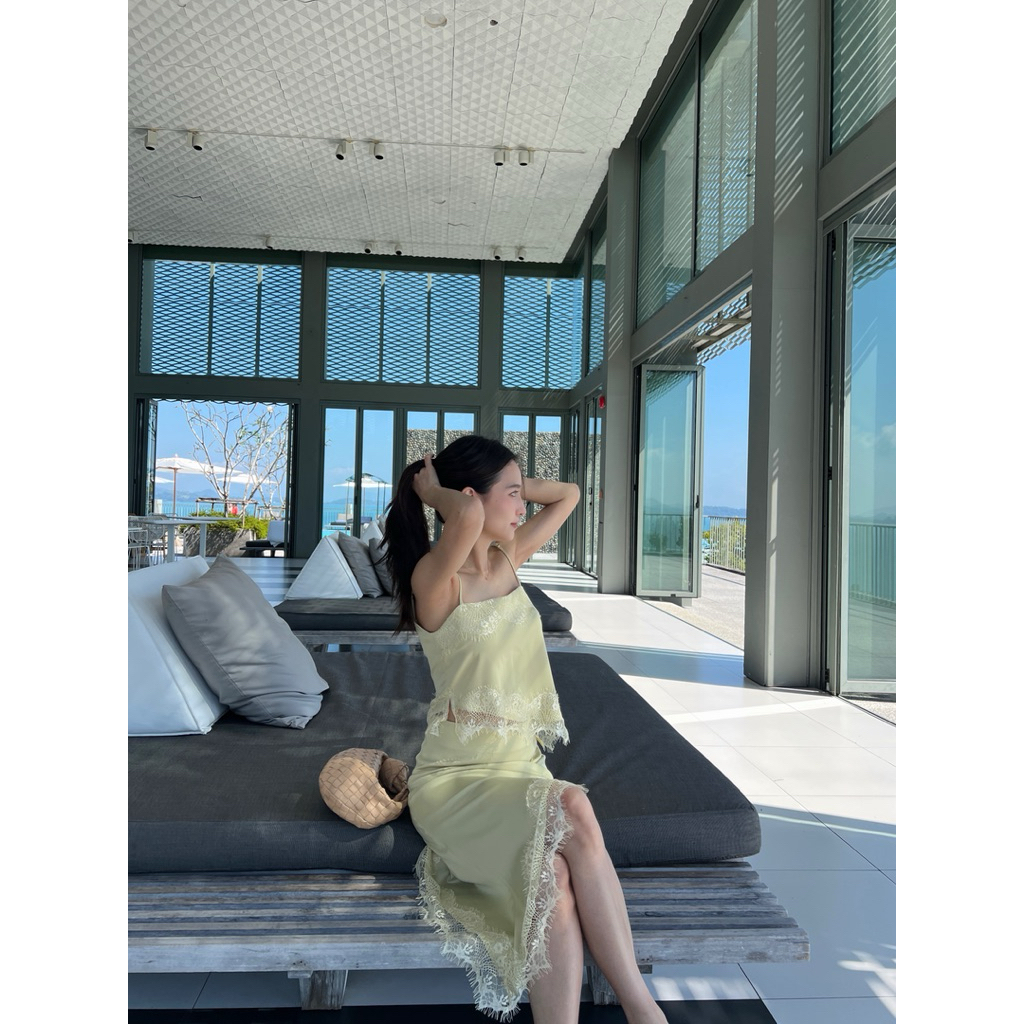 Whatagirlwants - Elara satin set ชุดเซท เสื้อและกระโปรงซาติน แต่งลูกไม้ ชุดออกงาน