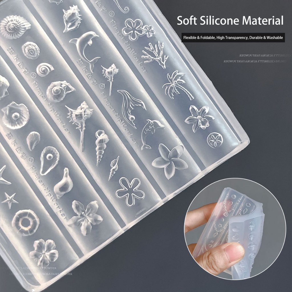 UYIKE Ocean สไตล์เล็บนูนแม่พิมพ์ซิลิโคนฤดูร้อนรุ่น Shell ปลาดาวเจล Polish บรรจุแม่พิมพ์ Easy-release เครื่องมือ
