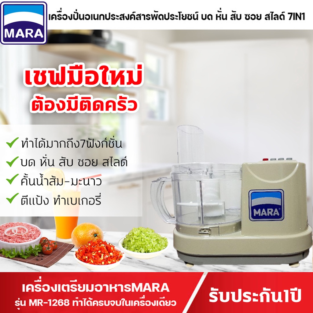 เครื่องปั่นมาร่า รุ่น MR-1268 บด หั่น สับ ซอย สไลด์ คั้นน้ำมะนาว ตีแป้ง ประกัน 1 ปี