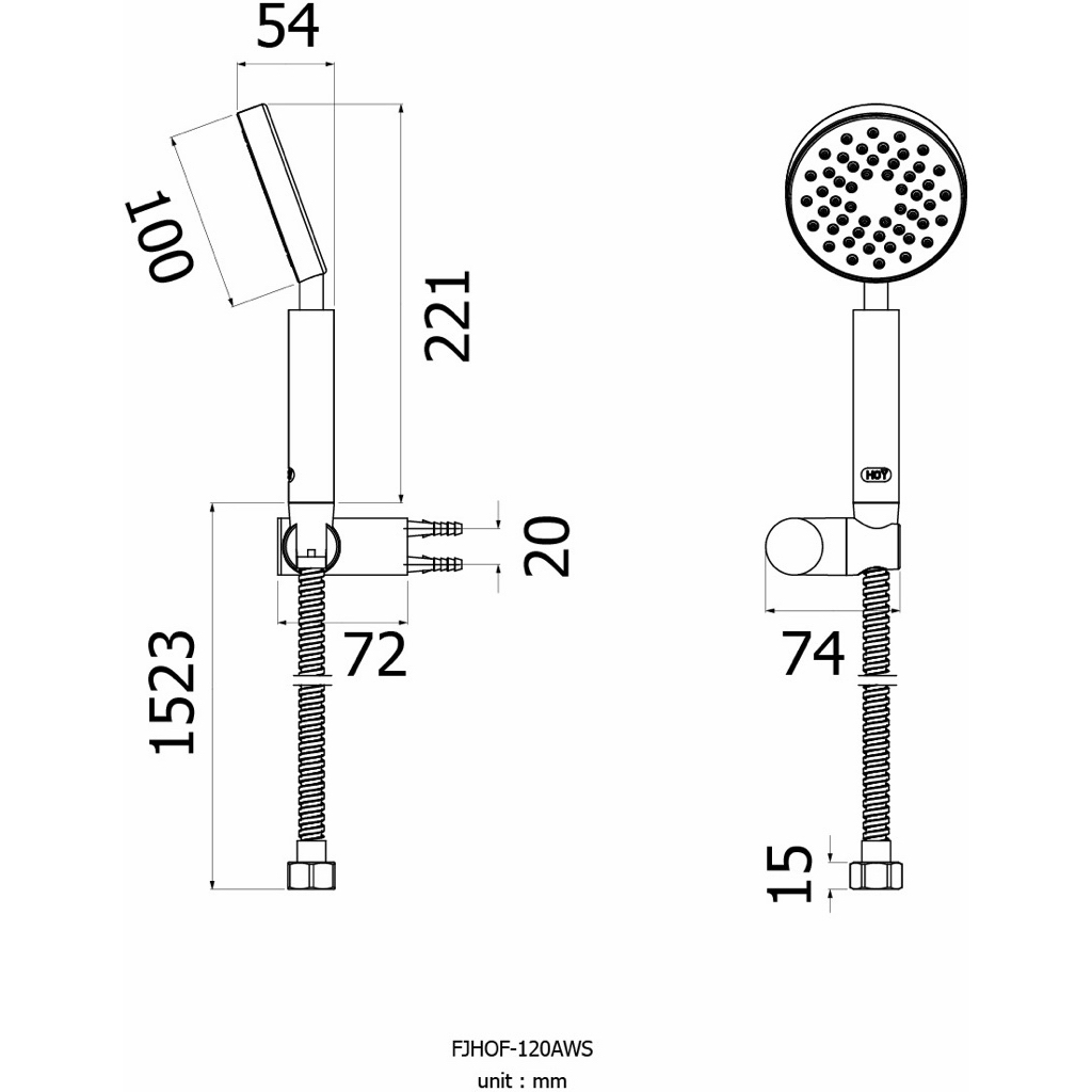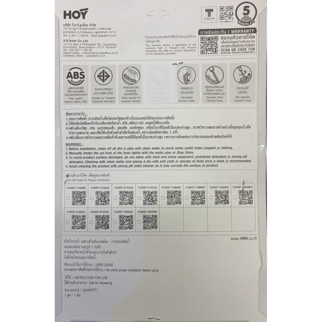 #HOY#ฝักบัวอาบน้ำพลาสติกสีขาว ขนาด4“ พร้อมสายสเตนเลส201 รุ่นHORI#FJHOF-120AWS