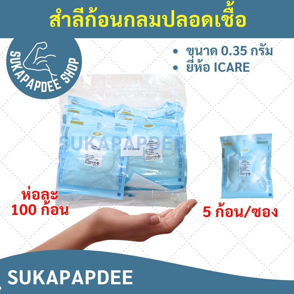 สำลีก้อนกลมปลอดเชื้อขนาด 0.35 กรัม (5 ก้อน/ซอง) บรรจุ 20 ซอง/ห่อ ยี่ห้อ ICARE