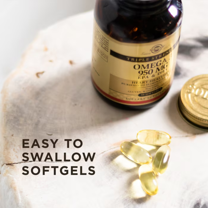 Solgar Triple Strength Omega 3 950 mg - 50 Softgels กรดไขมันโอเมก้า 3 ความเข้มข้นสูง (Triple Strength) สุขภาพหัวใจ