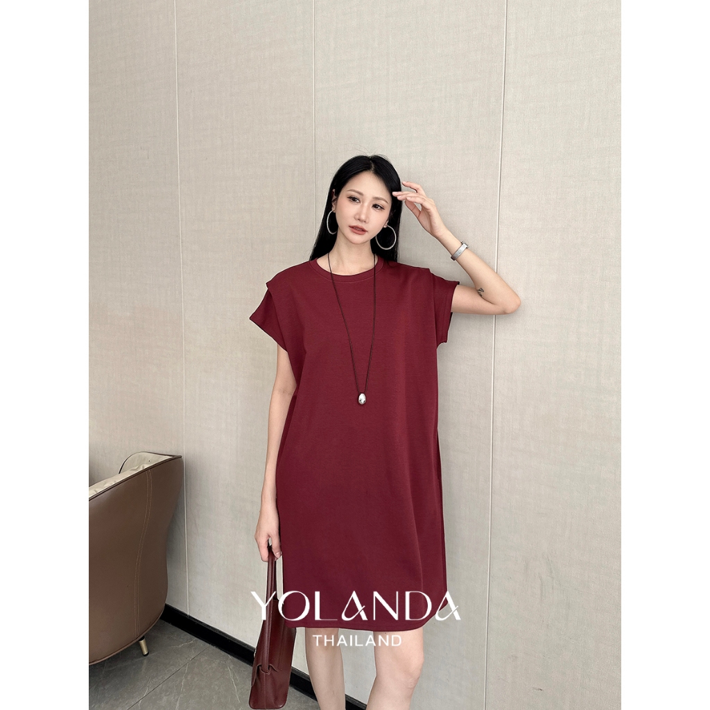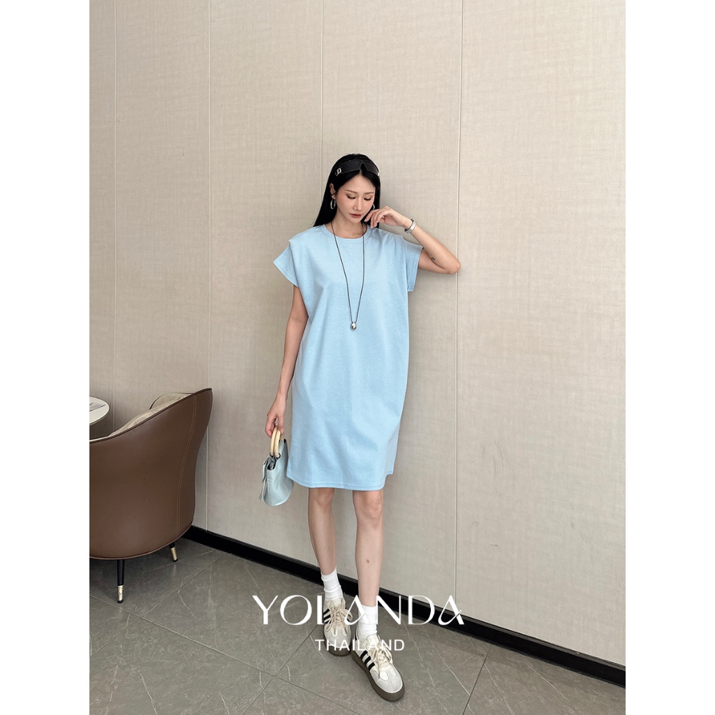 Yolanda เดรสคอกลมดีเทลไหล่ดรอป ทรงหลวมกำลังพอดี ให้ลุคโปร่งและเพรียวอย่างเป็นธรรมชาติ สไตล์มินิมอลโทนเกาหลี 4415