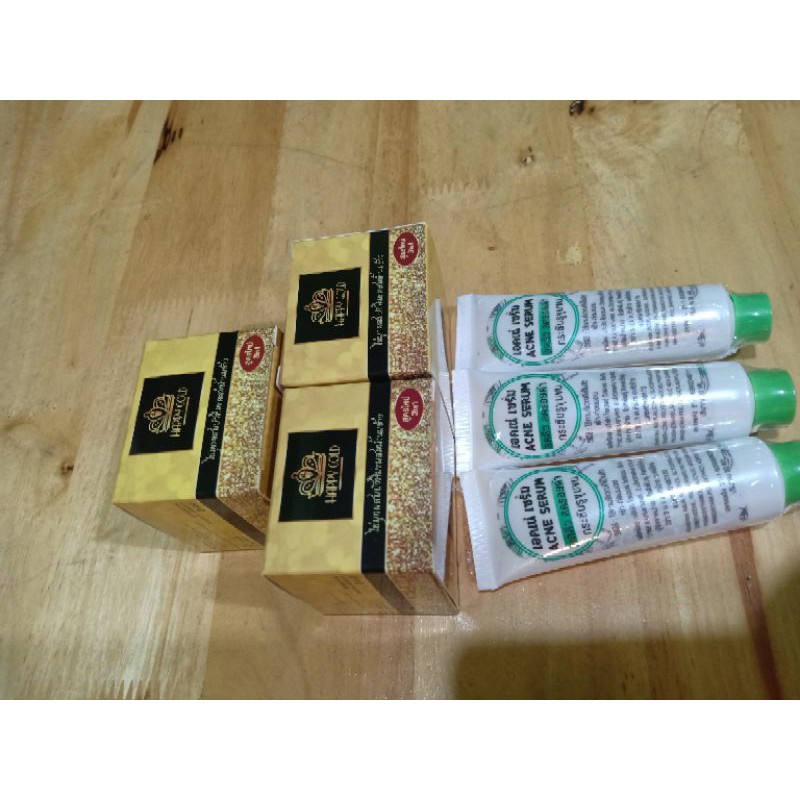 😲ครีมหน้าขาว แฮปปี้โกลด์และเซรั่มเอคเน่(แพค6ชิ้น)