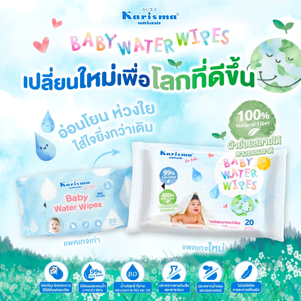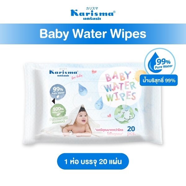 ( NEW ) Karisma แคริสม่า ทิชชู่เปียกสูตรน้ำ ผ้าเปียกสำหรับเด็ก 20 แผ่น