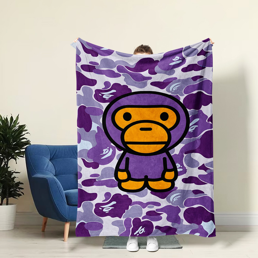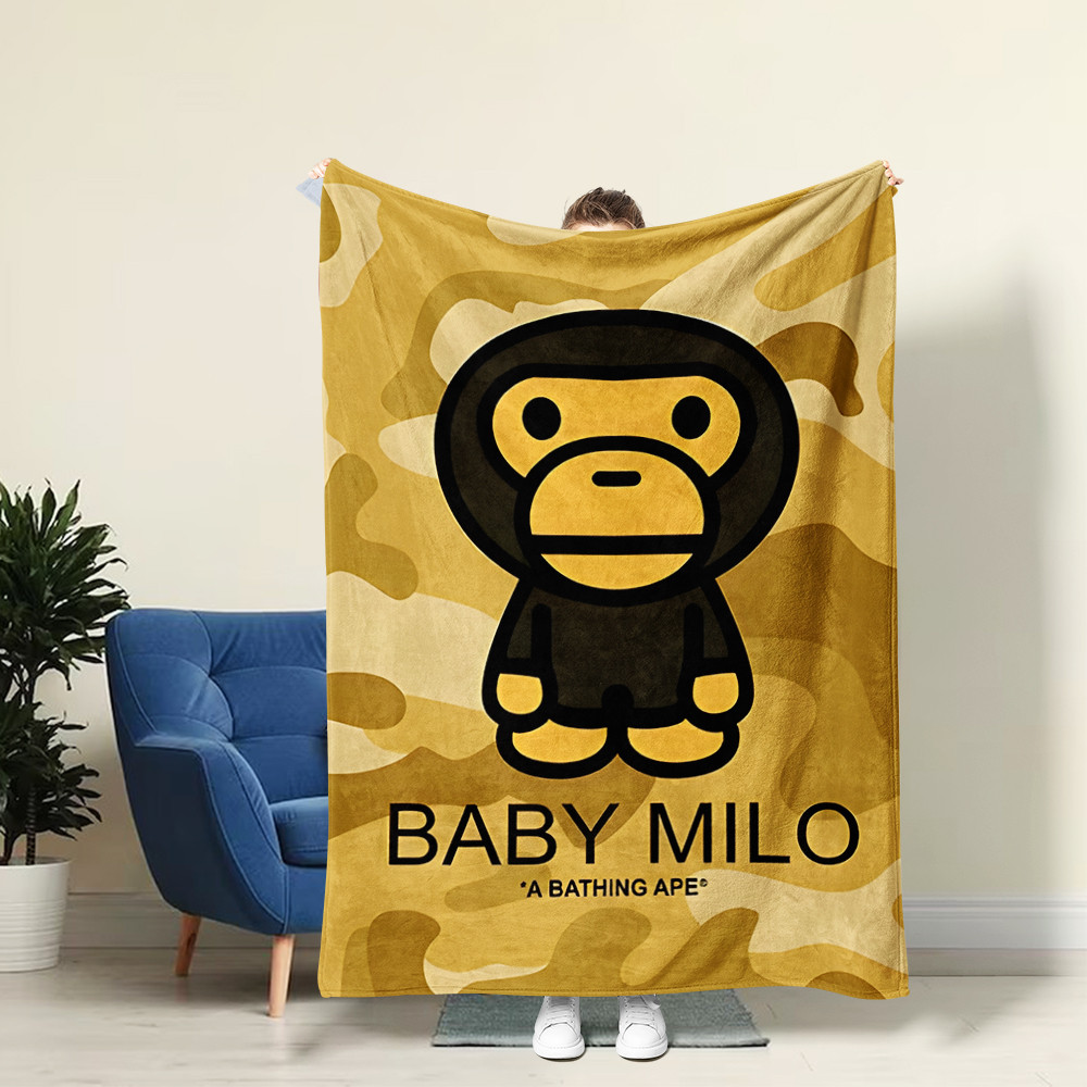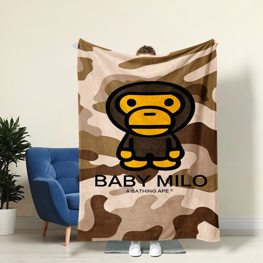 ผ้าห่มสักหลาด Baby Milo Bape - ตุ๊กตา Cozy อบอุ่นนุ่มพิเศษโยนสําหรับเตียงโซฟาโซฟา